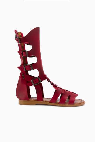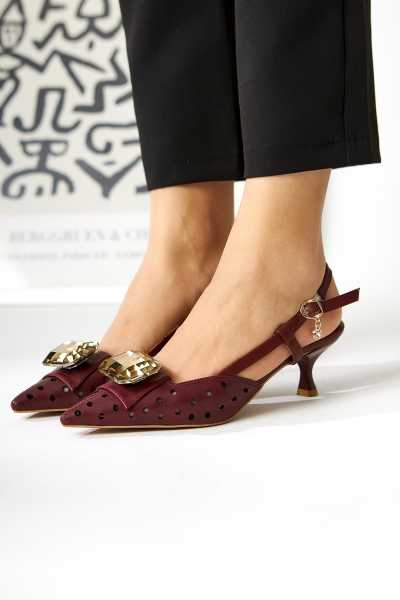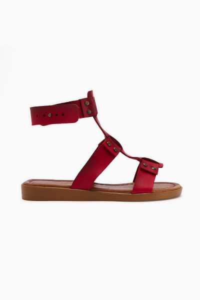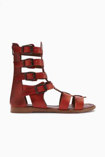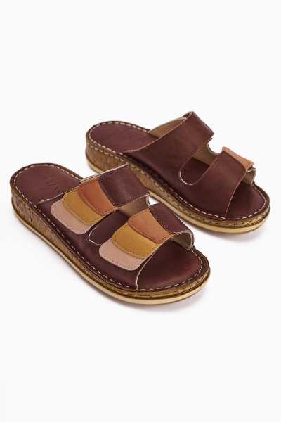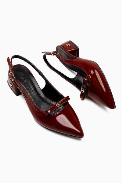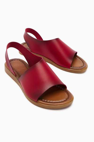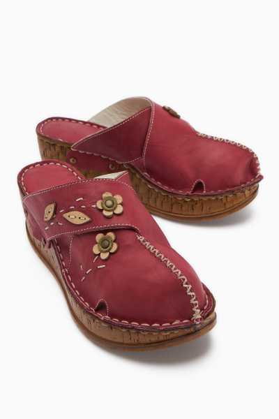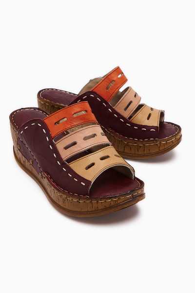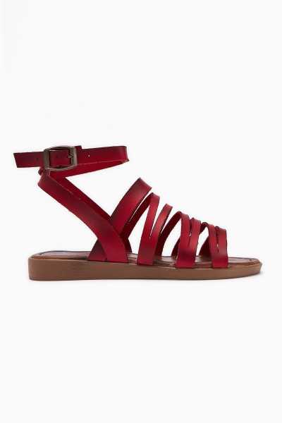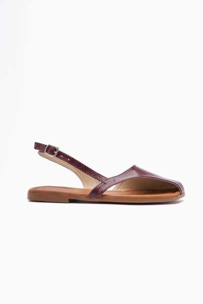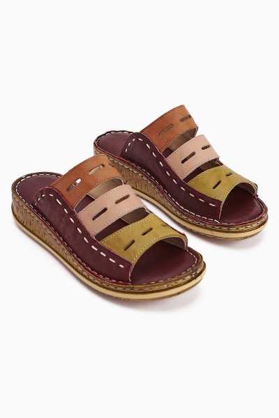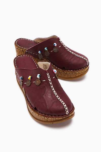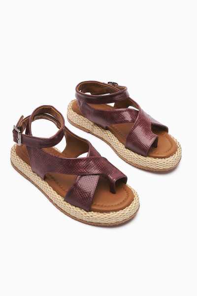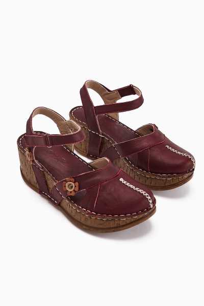 Hakiki Deri Lilah Bordo Antik Detaylı Sandalet