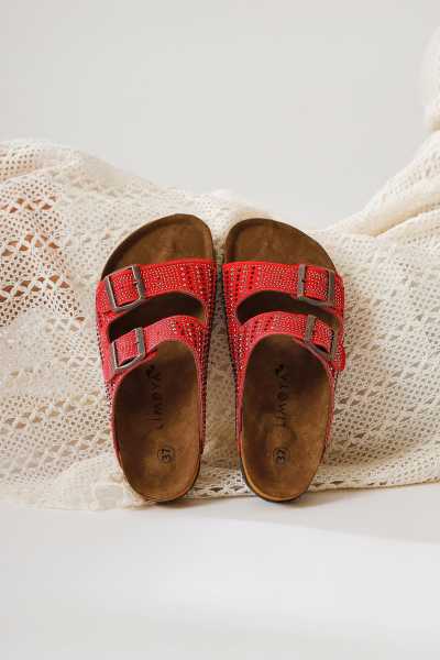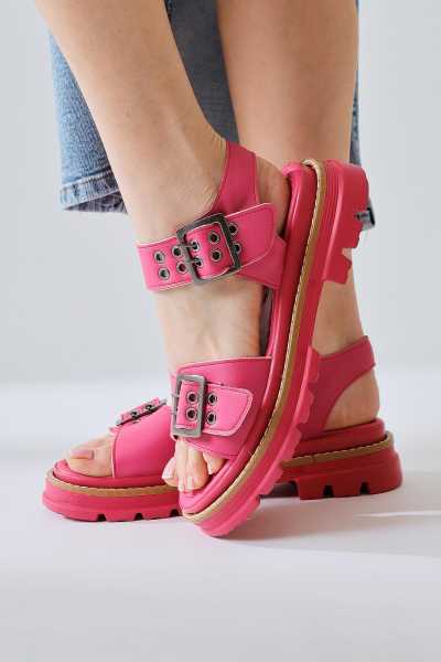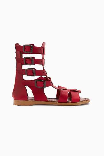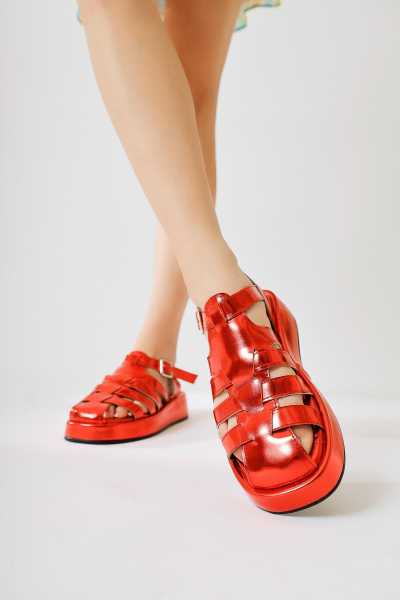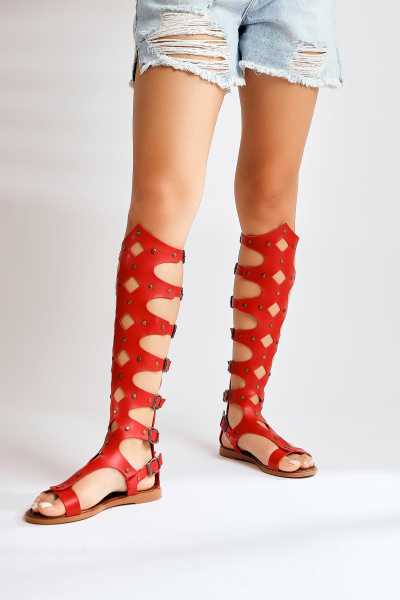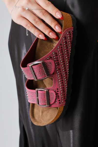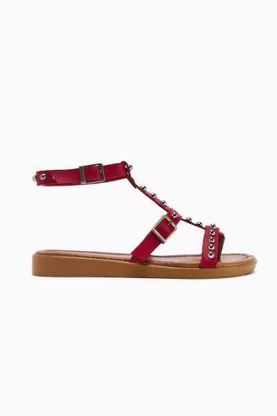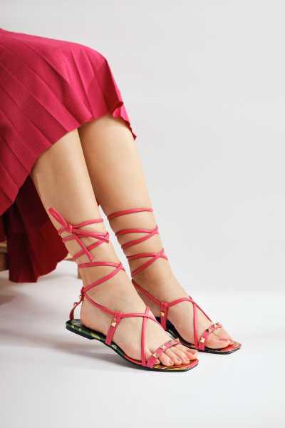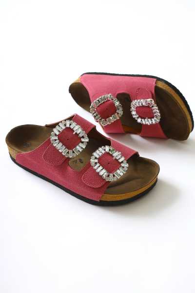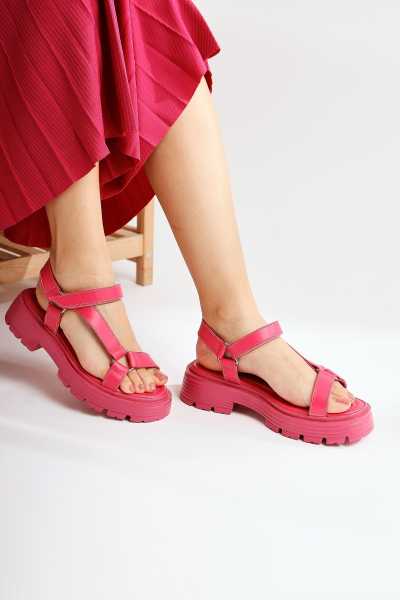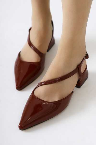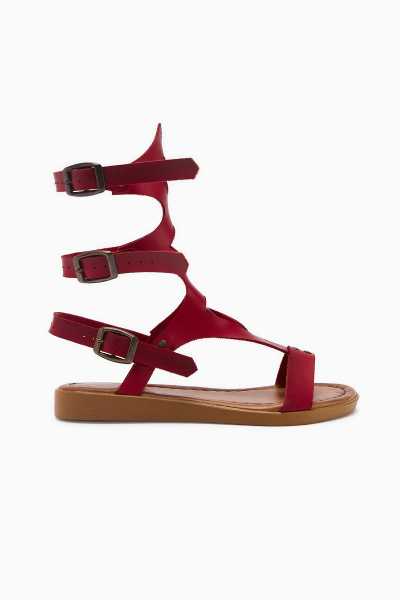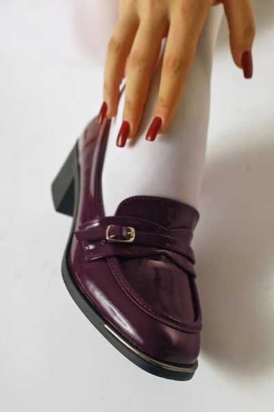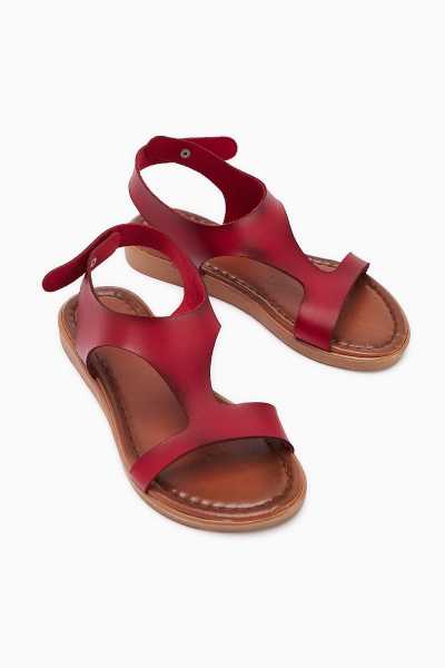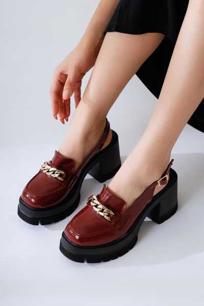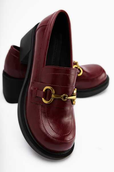 Hakiki Deri Lilah Bordo Antik Detaylı Sandalet