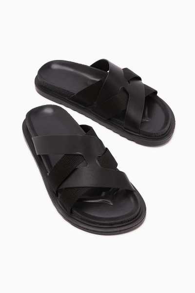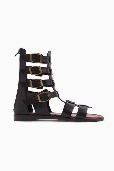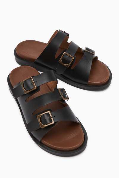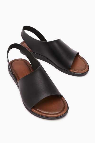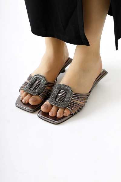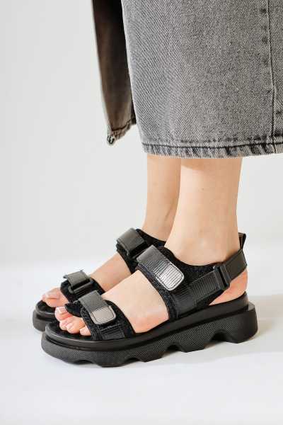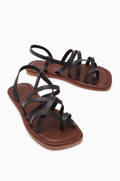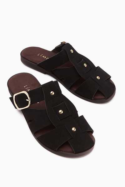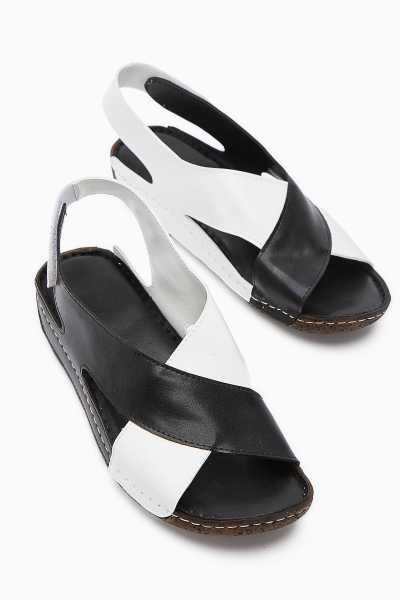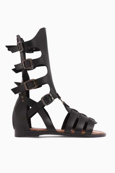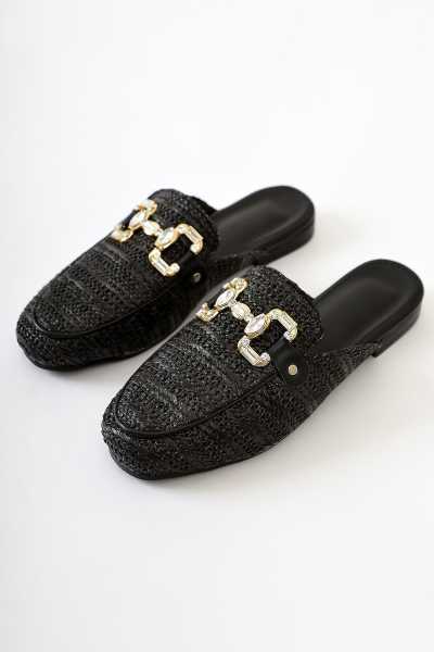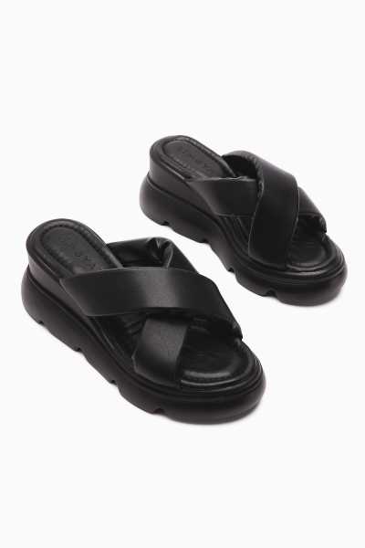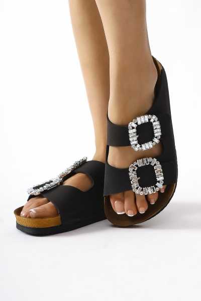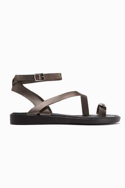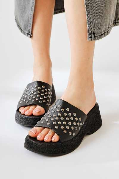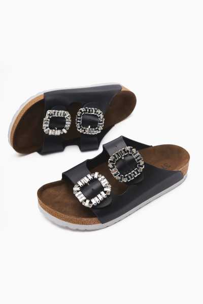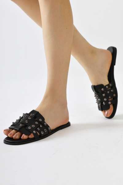 Hakiki Deri Lilah Siyah Antik Detaylı Sandalet