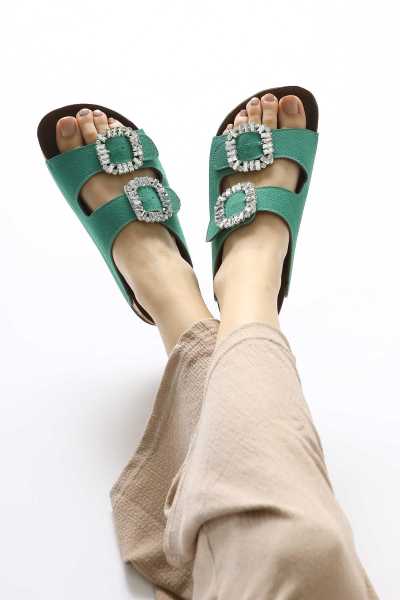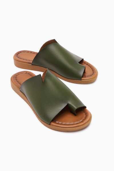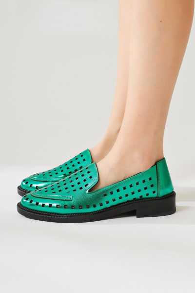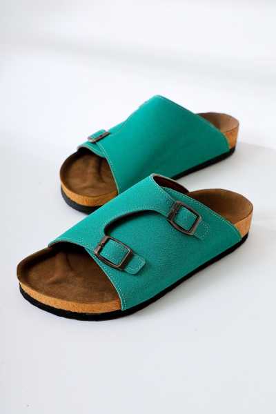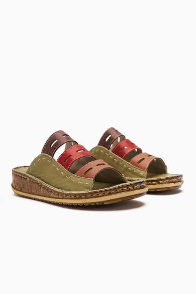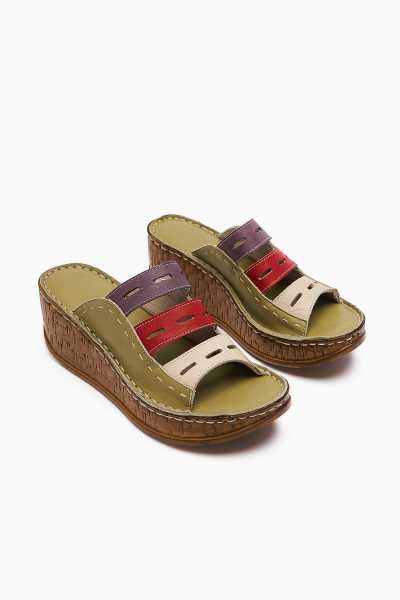 Hakiki Deri Etta Yeşil Mor Kırmızı Ten Lazer Kesim Terlik (Tam Ortapedik Terlik)