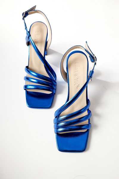 Magdalena Lacivert Yüksek Topuk Açık Burun Sandalet