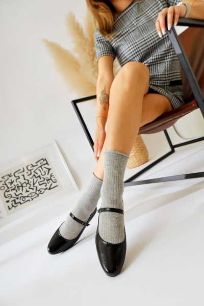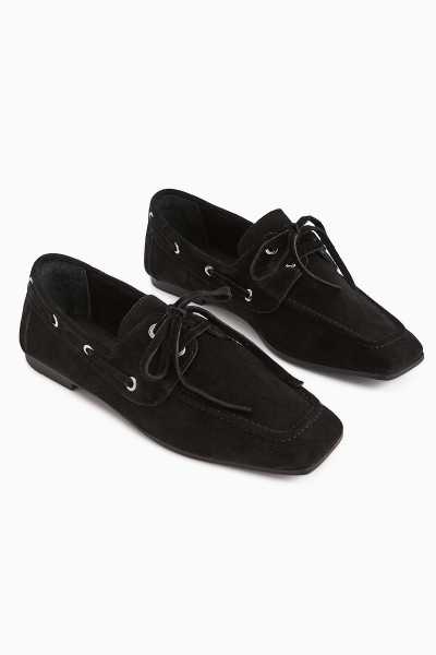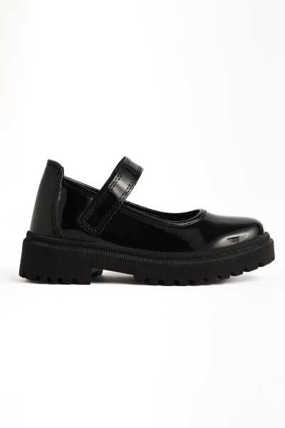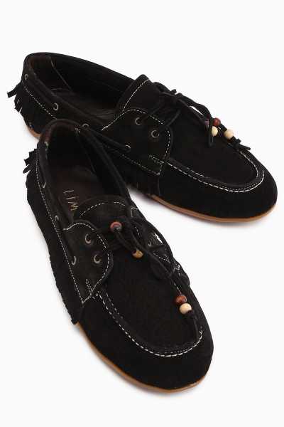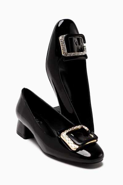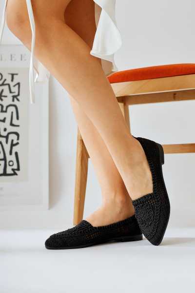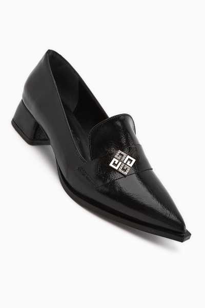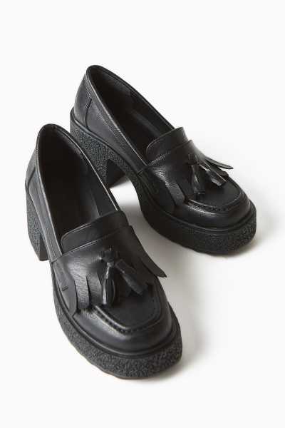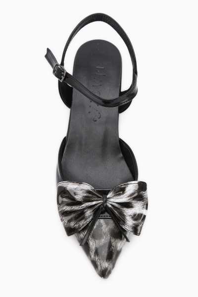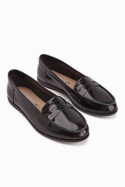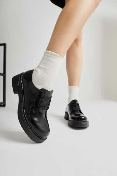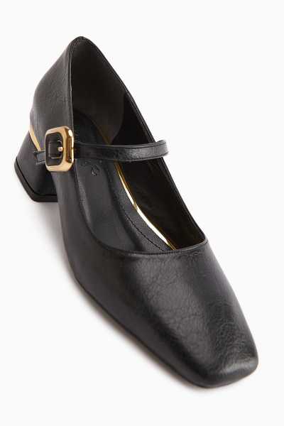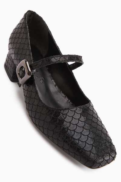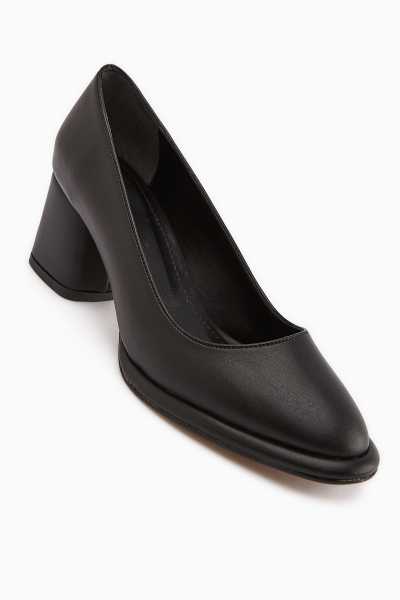 Anjela Hakiki Deri Siyah Fiyonk Detaylı Kadın Babet Ayakkabı