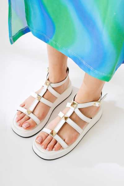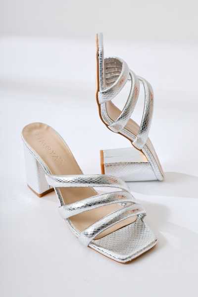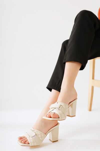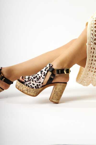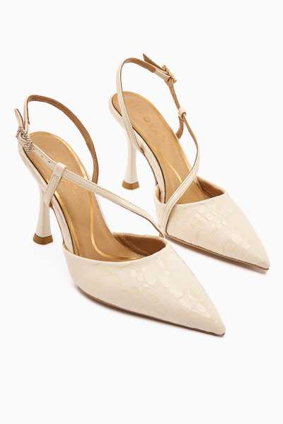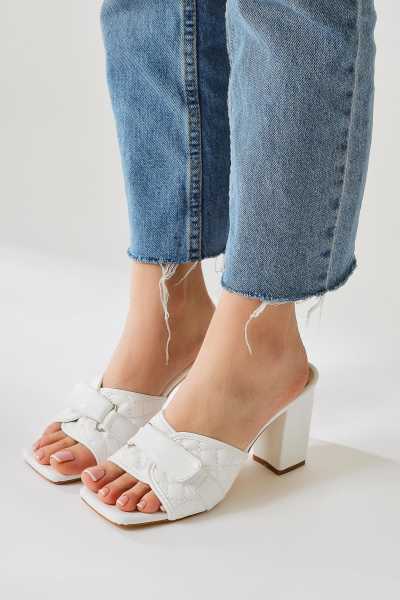 Marilyn Beyaz Kroko Dolgu Topuklu Sandalet