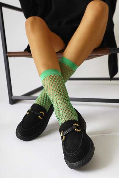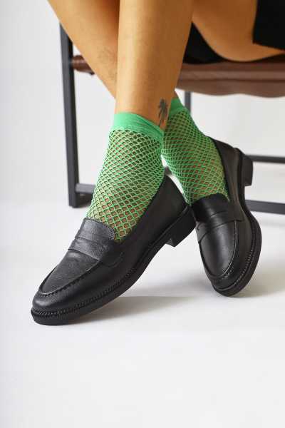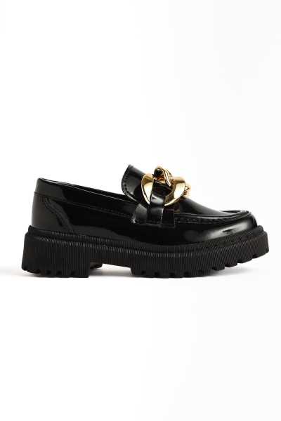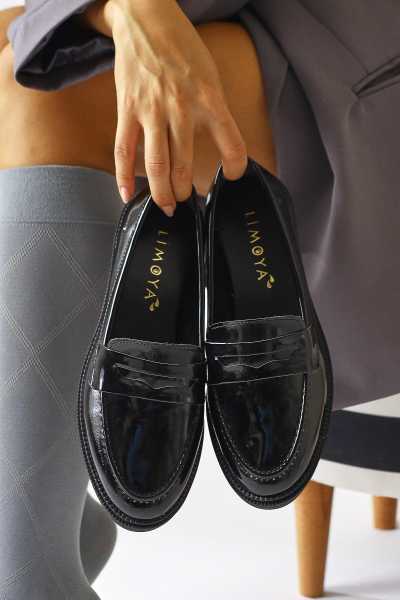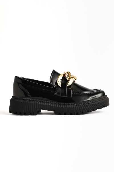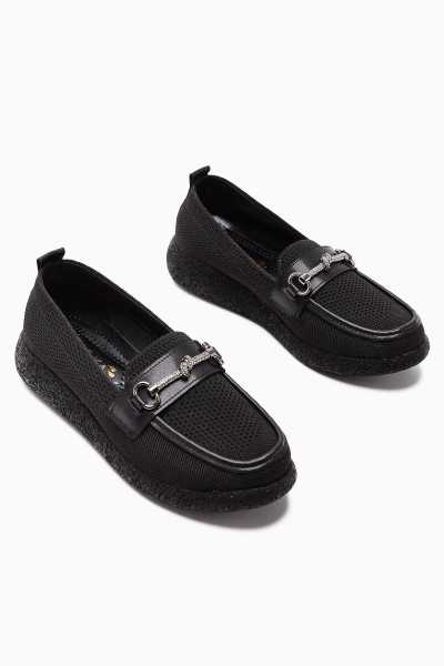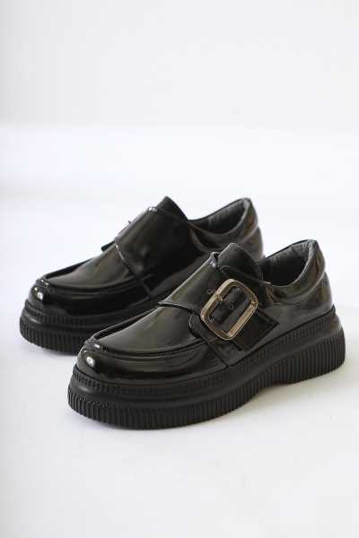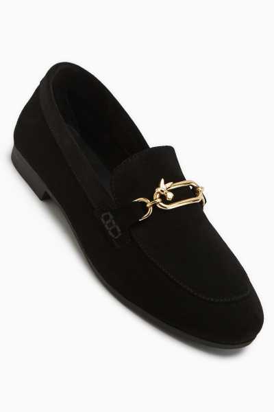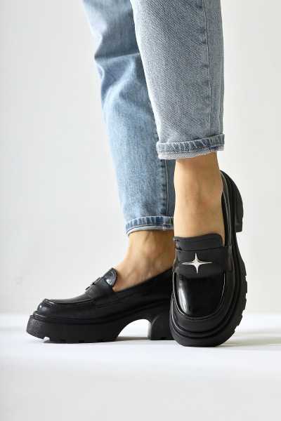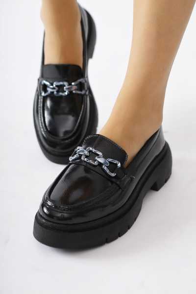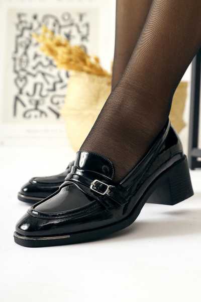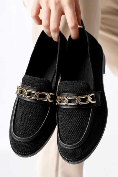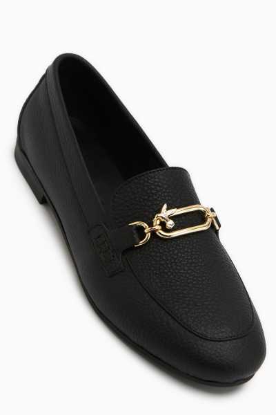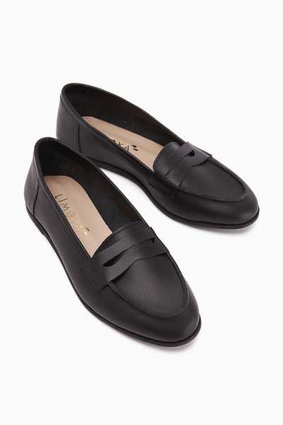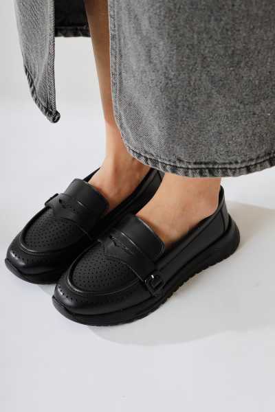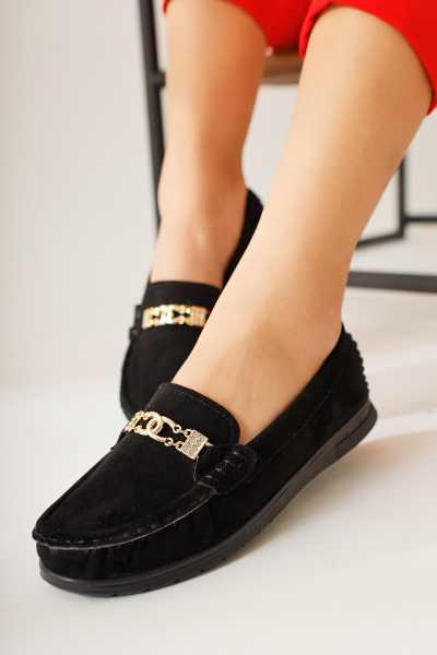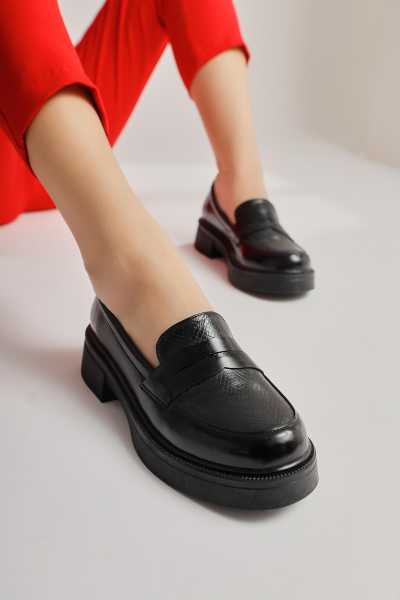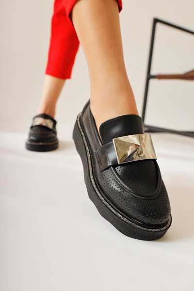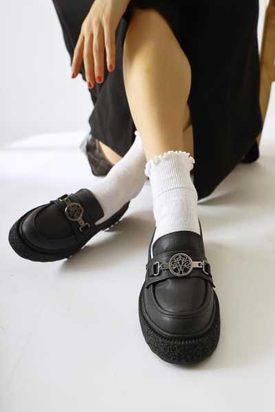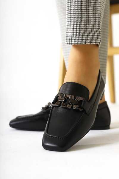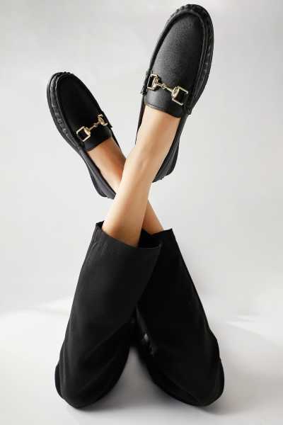 Alessa Hakiki Deri Siyah Tokalı Loafer Kadın Günlük Makosen Ayakkabı