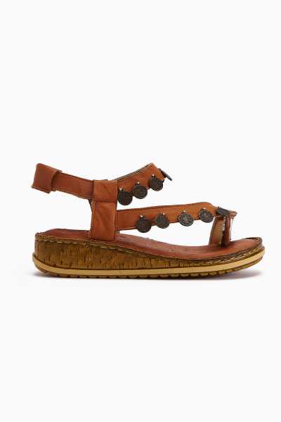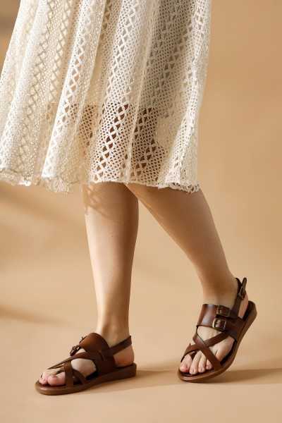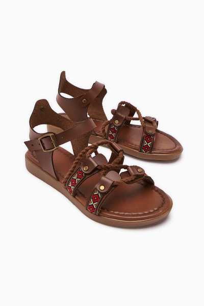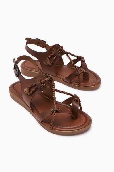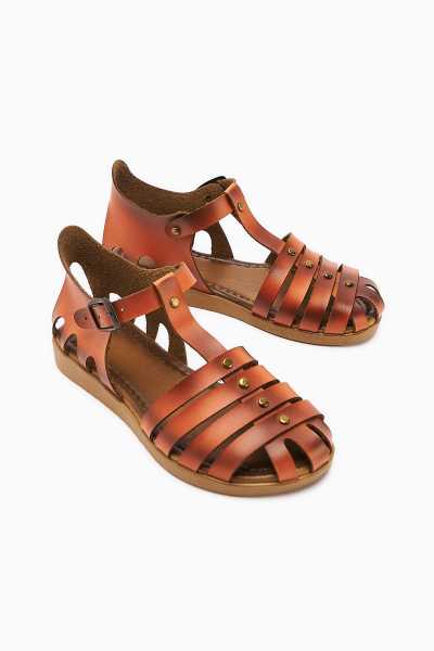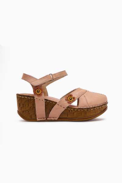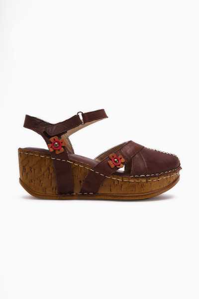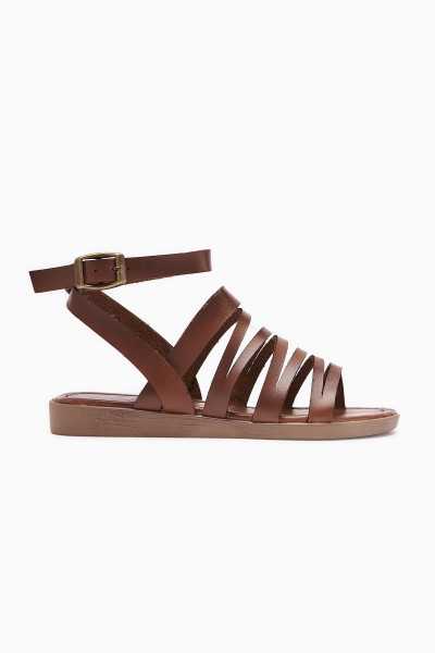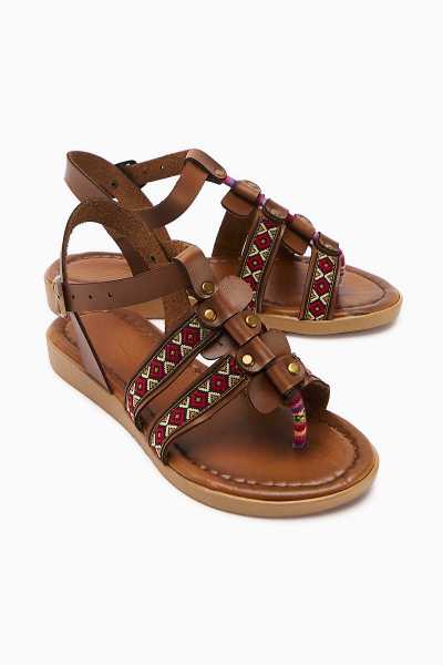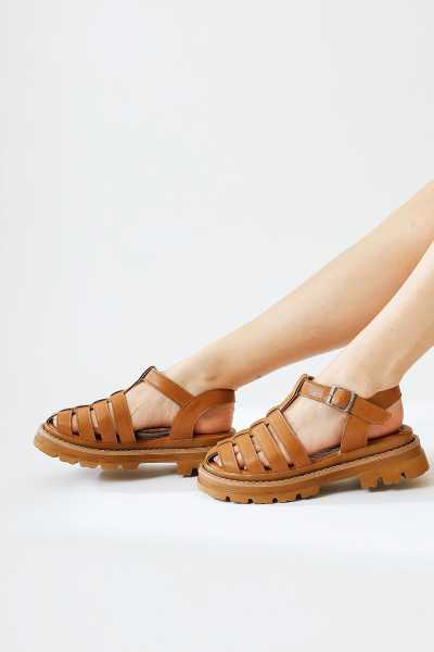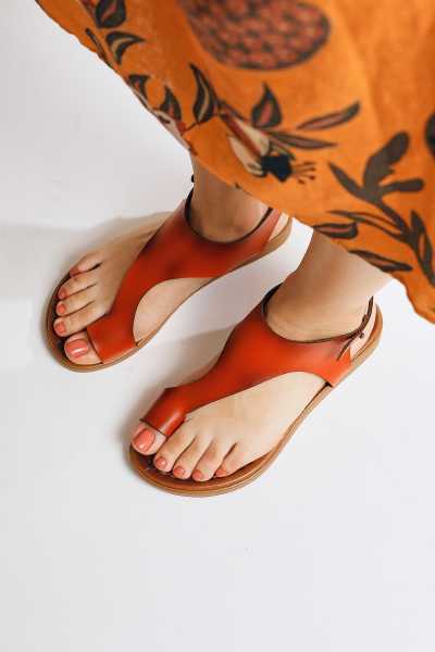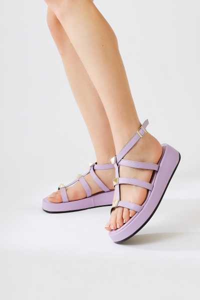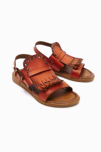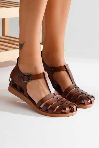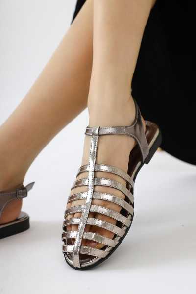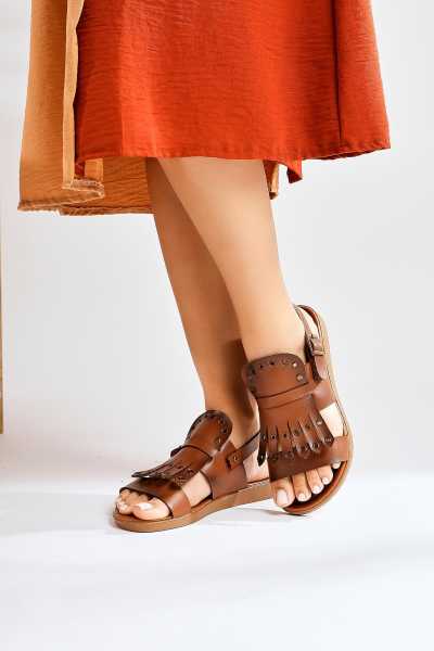 Hakiki Deri Lilah Taba Antik Detaylı Sandalet