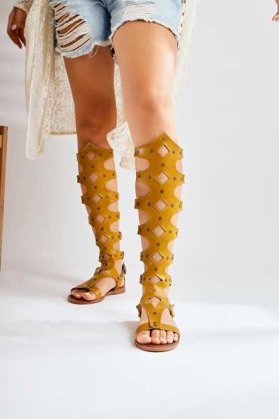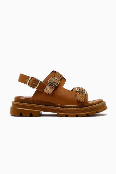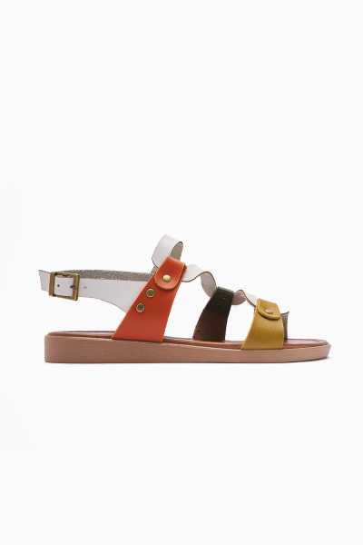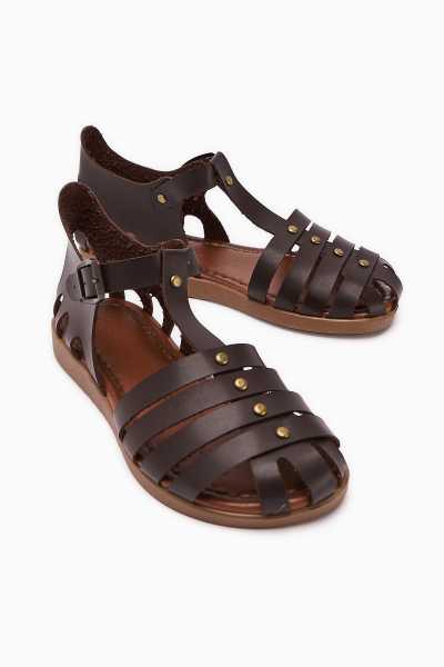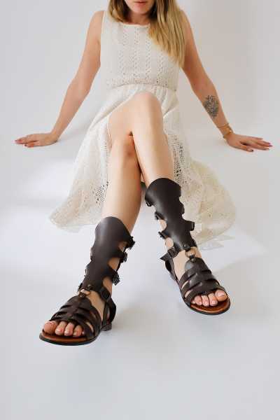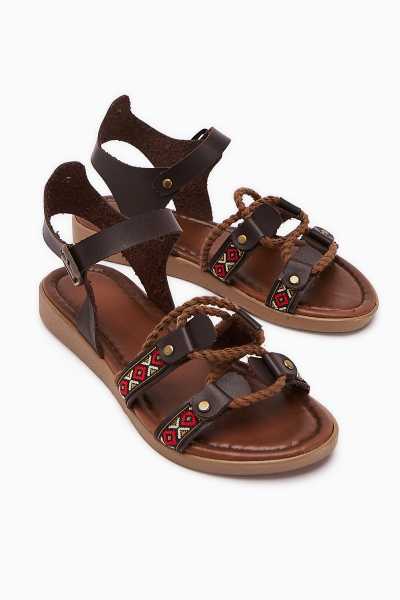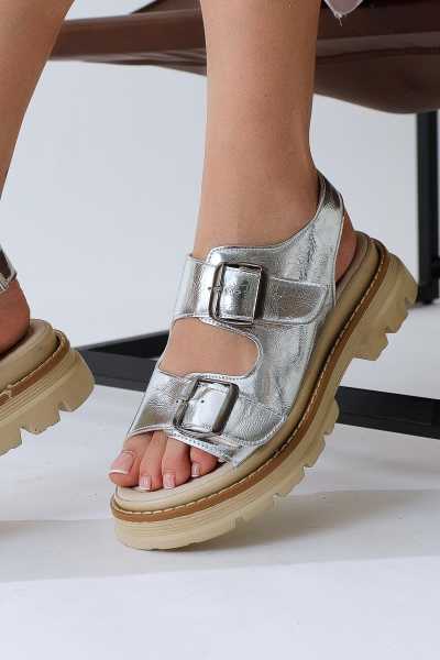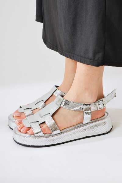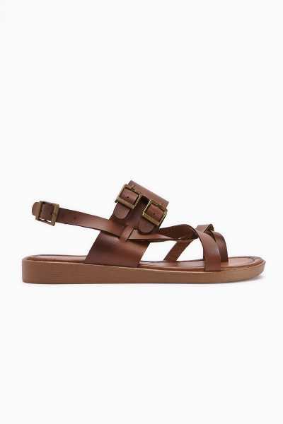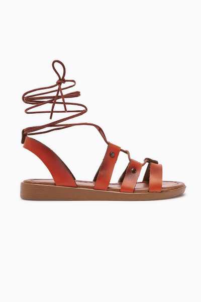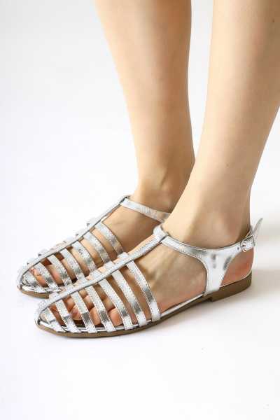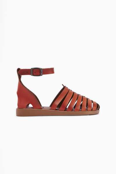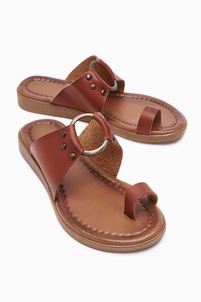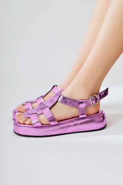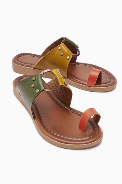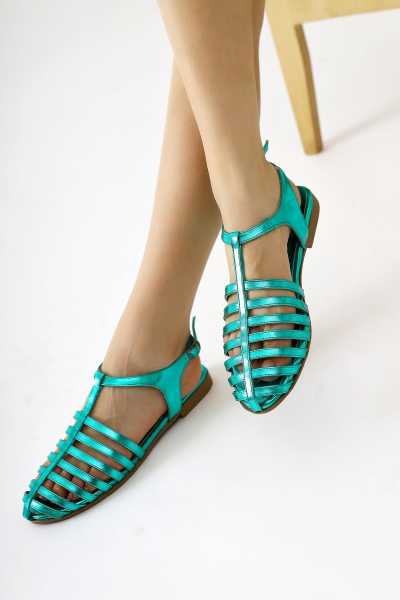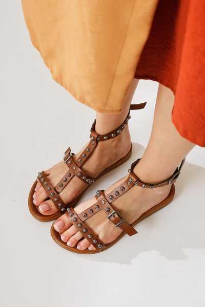 Hakiki Deri Lilah Taba Antik Detaylı Sandalet