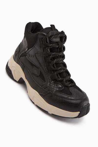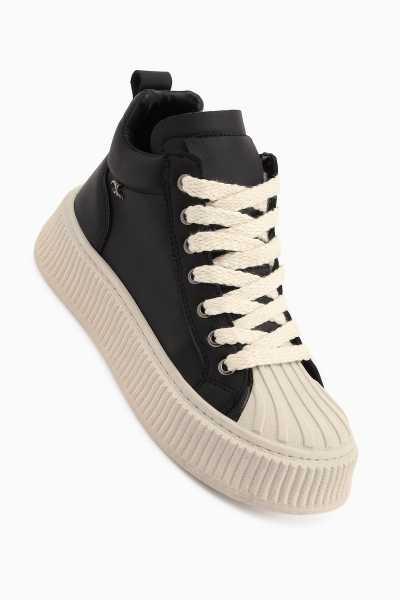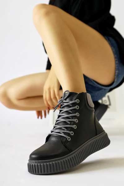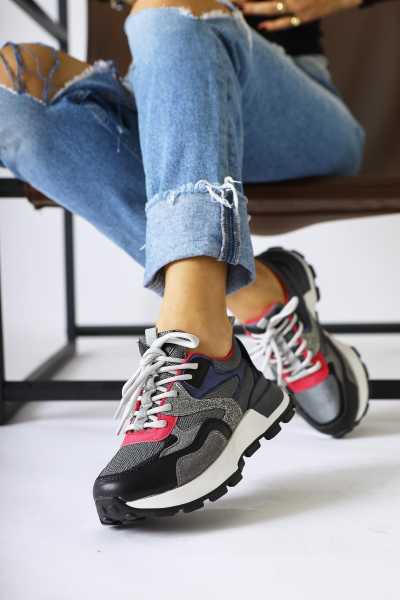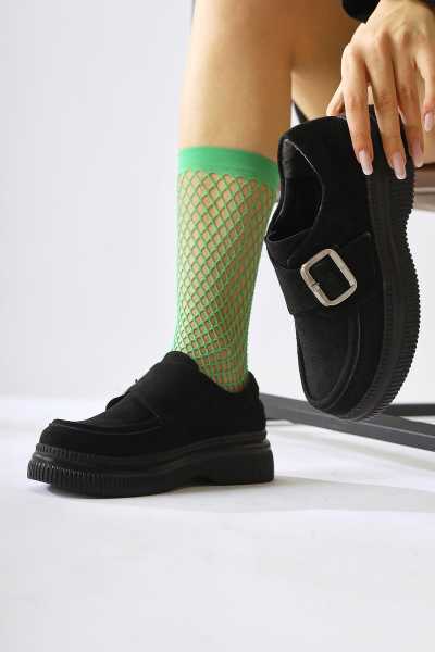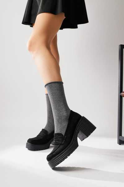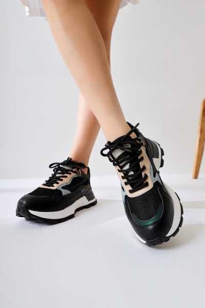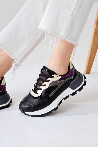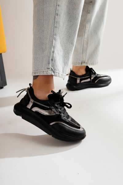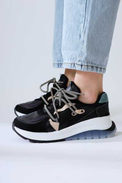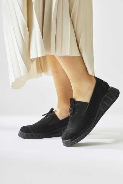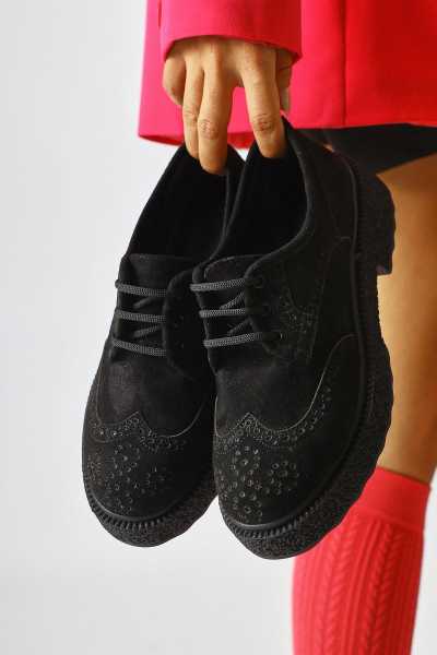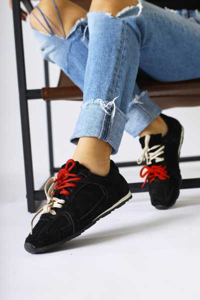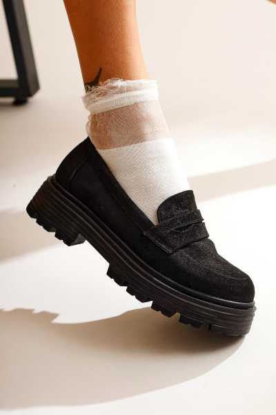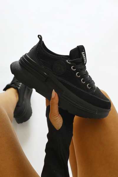 Rita Siyah Süet Kalın Tabanlı Günlük Sneaker Ayakkabı