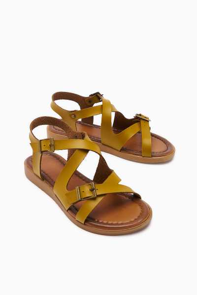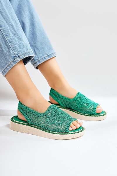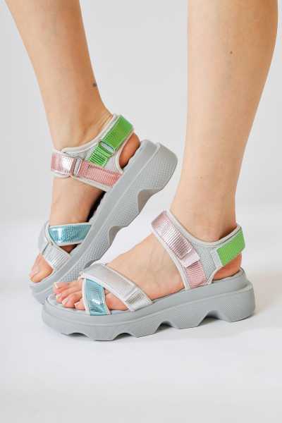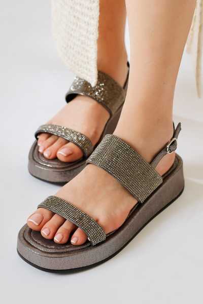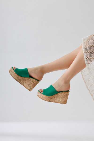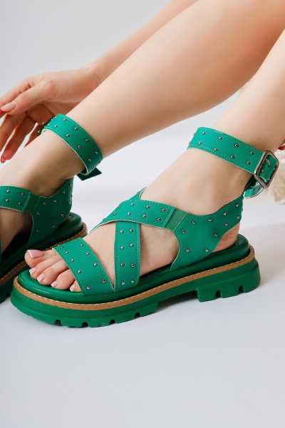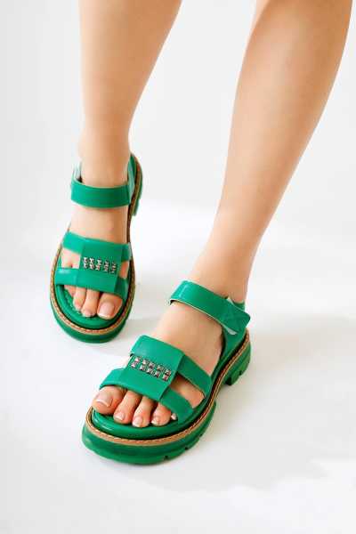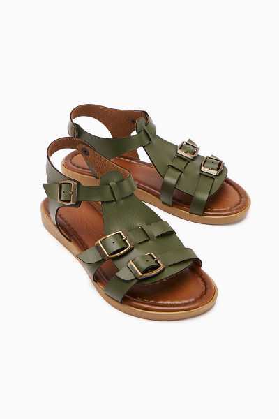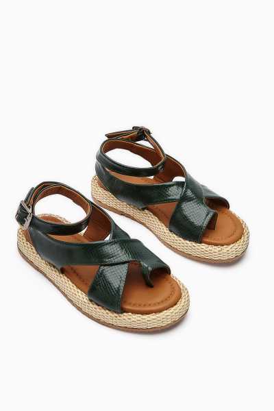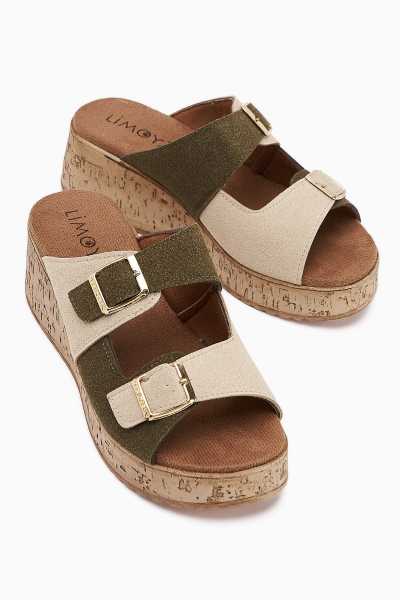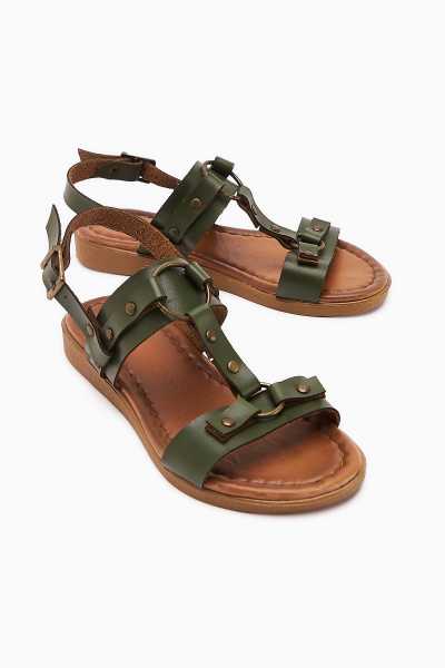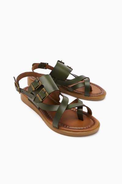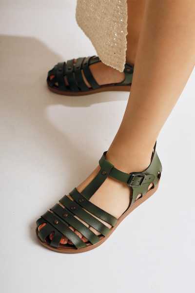 Scarlett Hardal Haki Taba Kemerli Dolgu Taban Sandalet