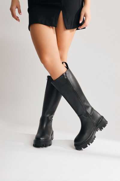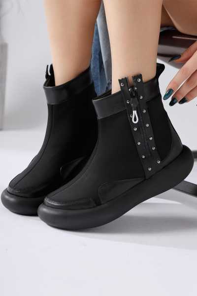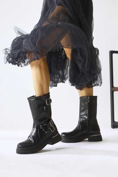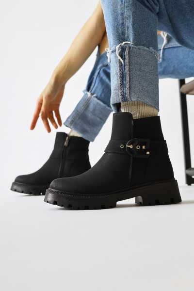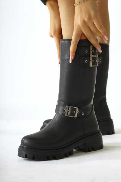 Carima Siyah Küt Brunlu Kadın Çizme