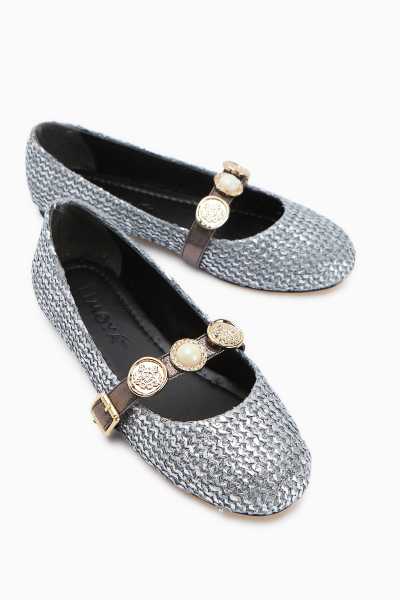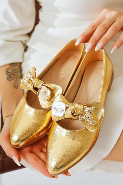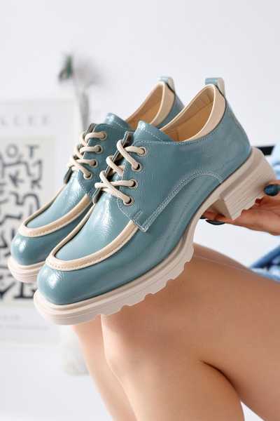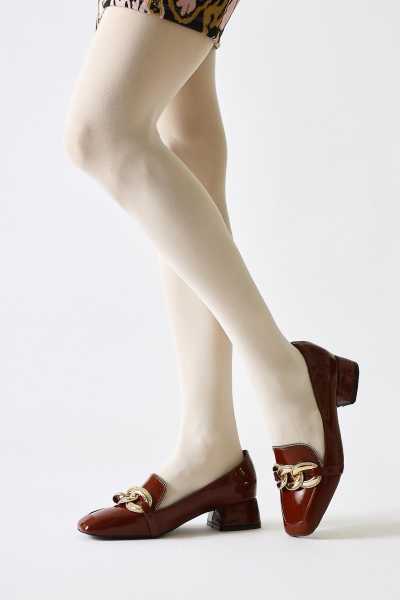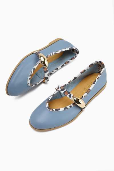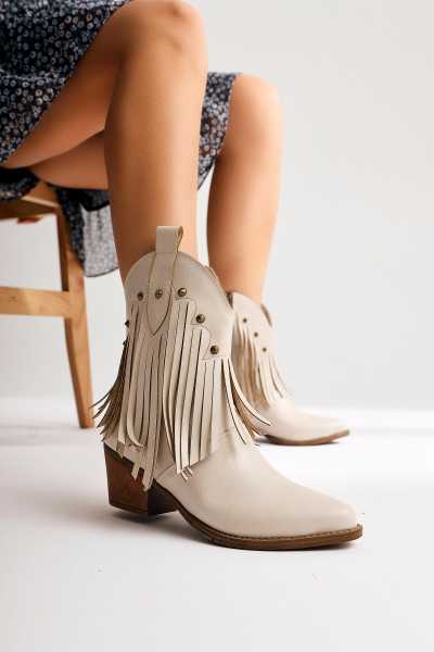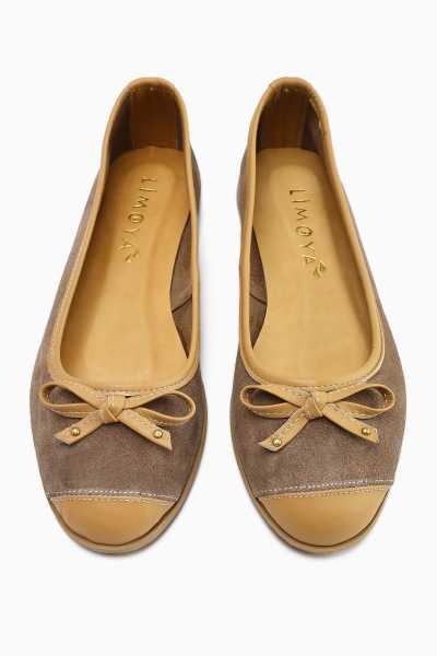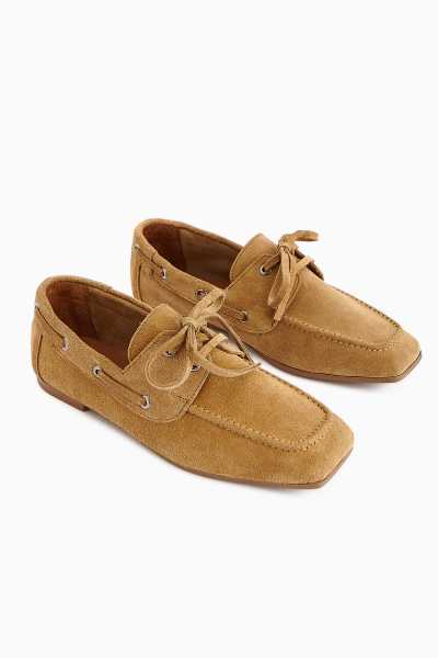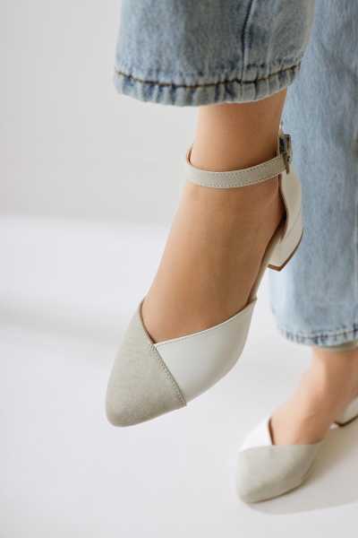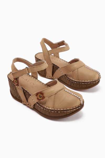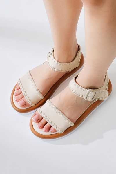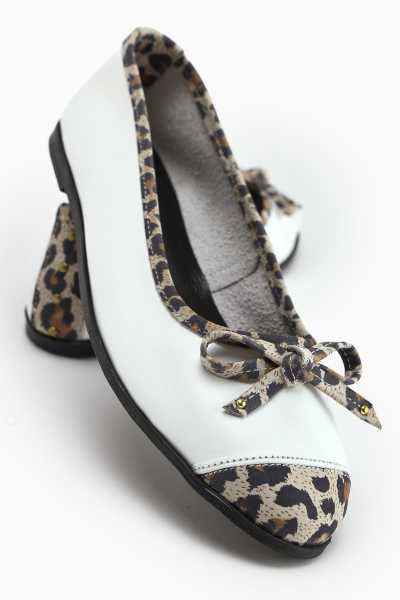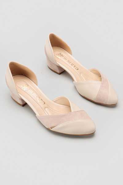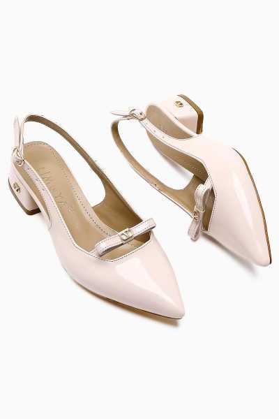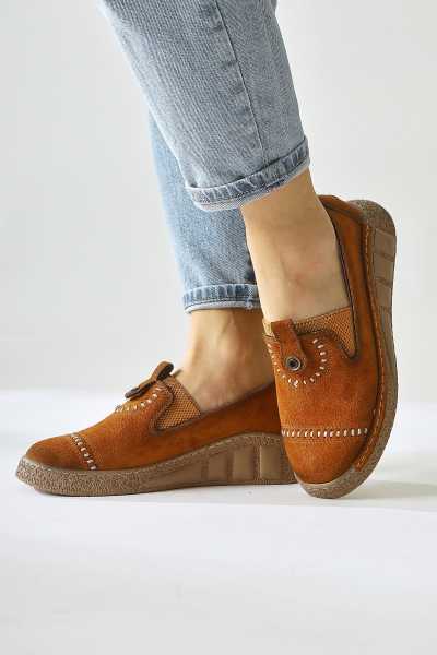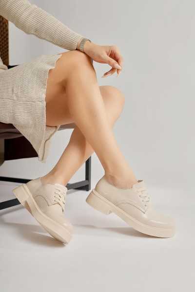 Anjela Hakiki Deri Bej Fiyonk Detaylı Kadın Babet Ayakkabı