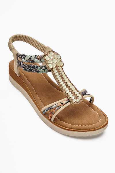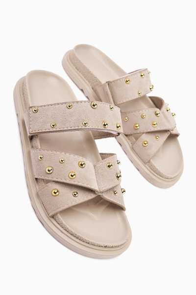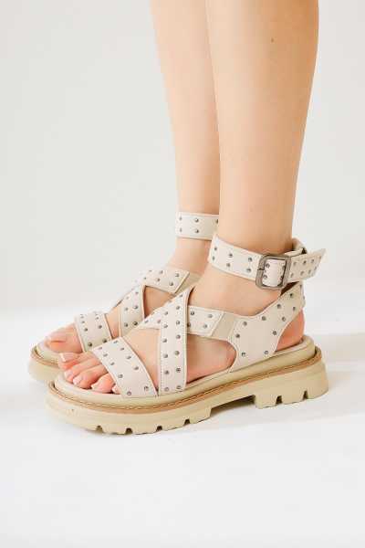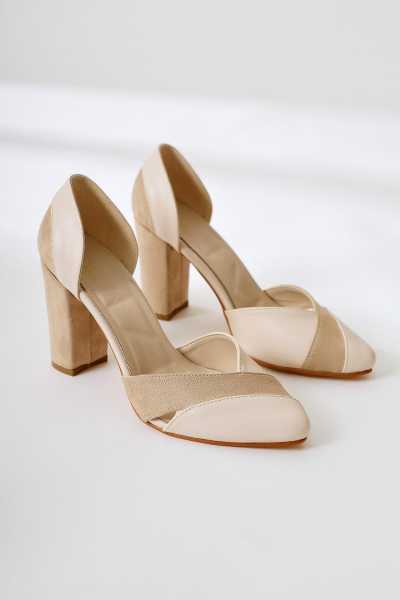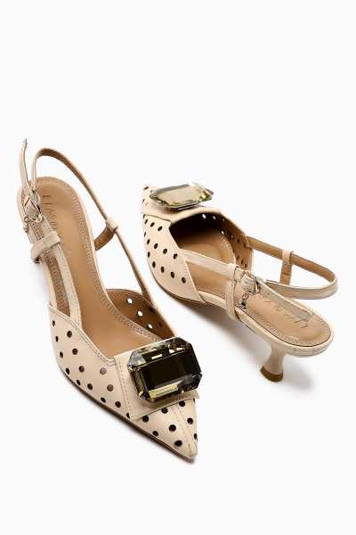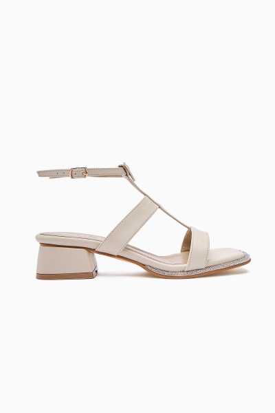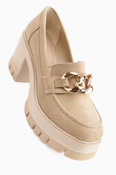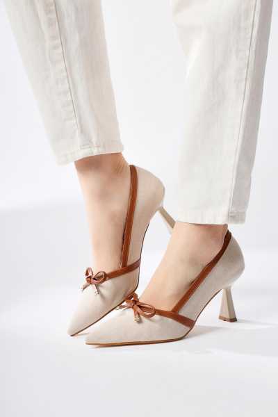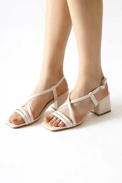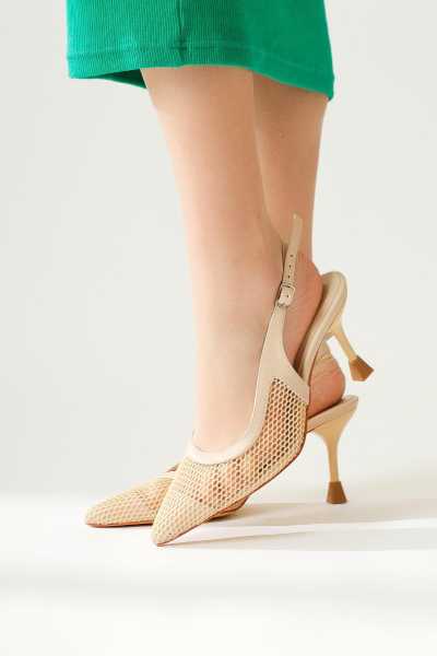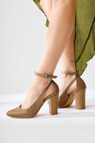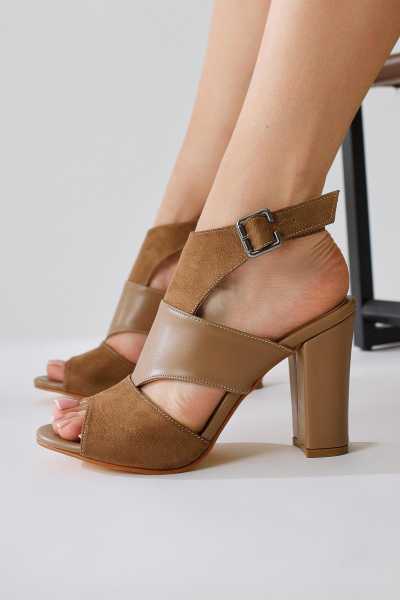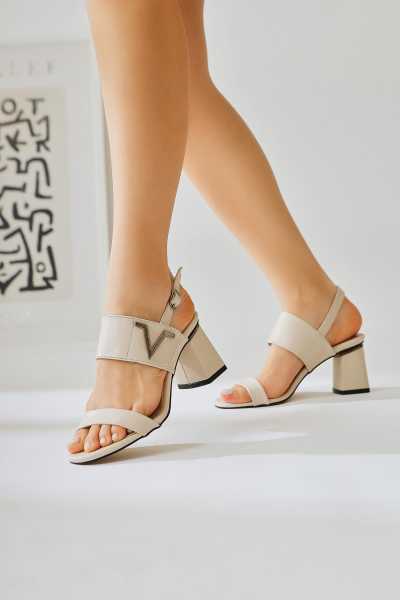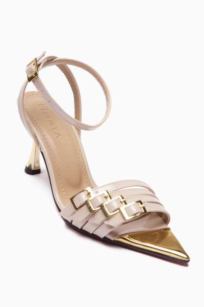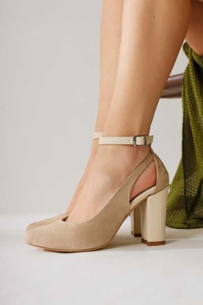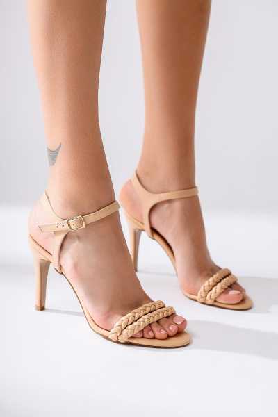 Marilyn Bej Süet Dolgu Topuklu Sandalet