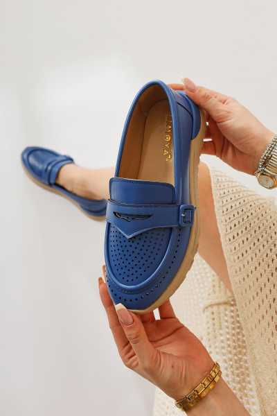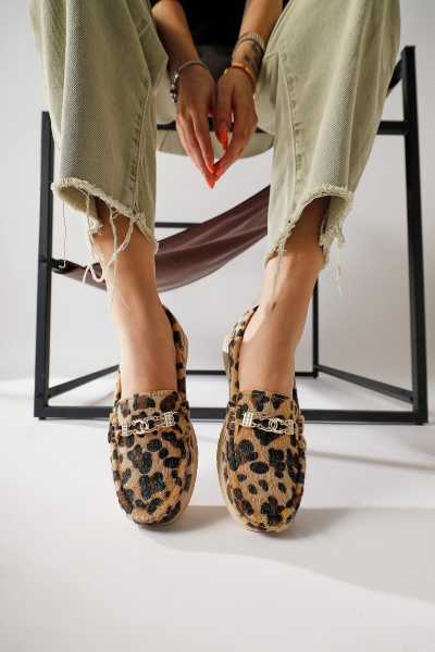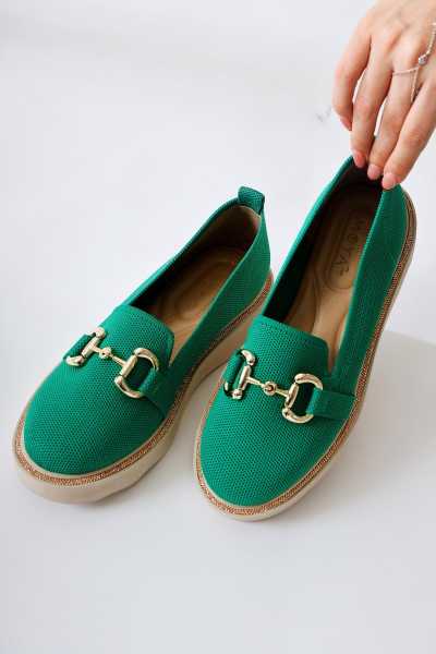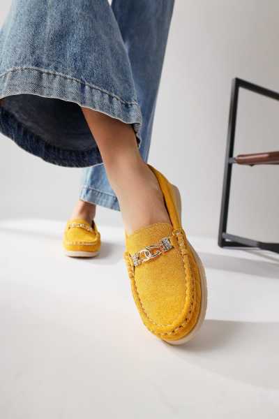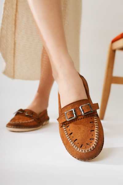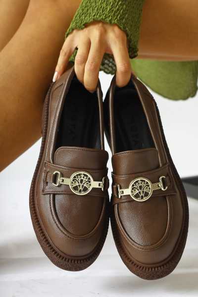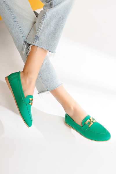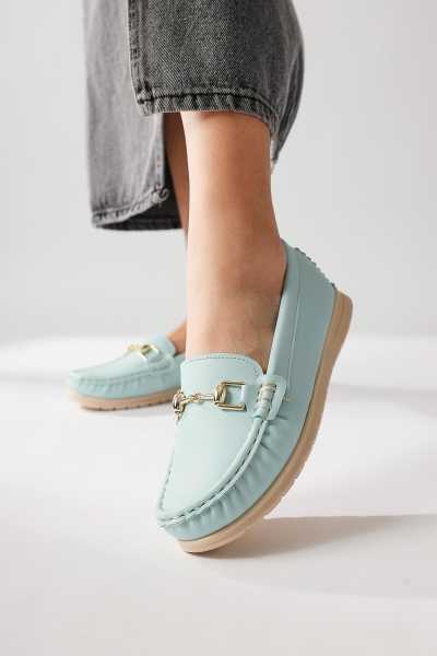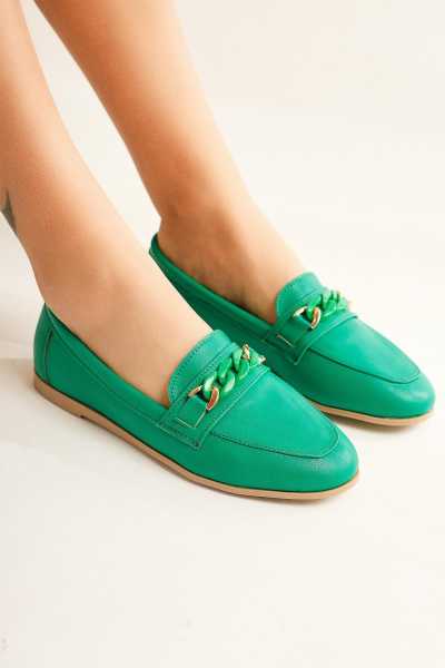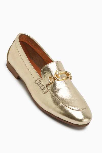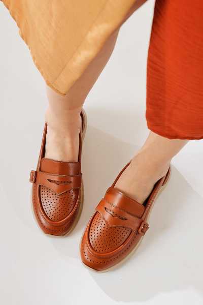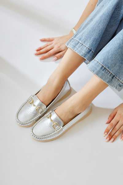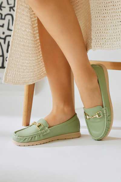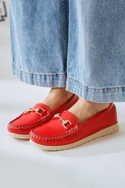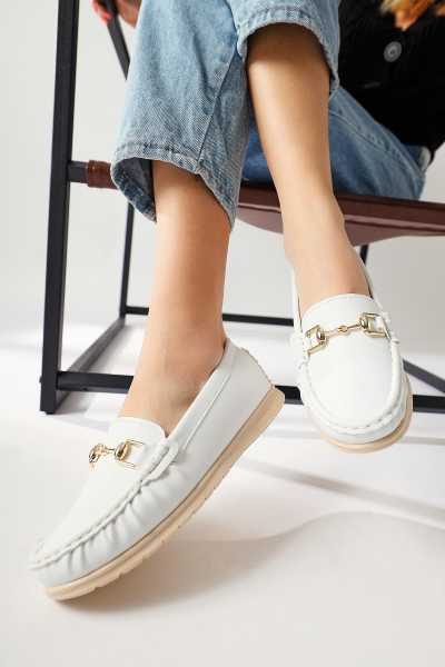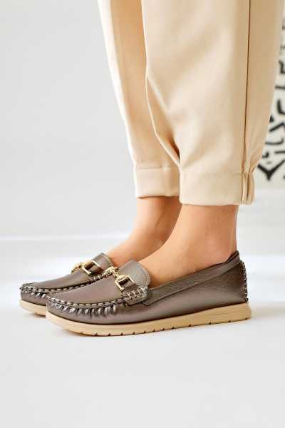 Alessa Hakiki Deri Altın Tokalı Loafer Kadın Günlük Makosen Ayakkabı