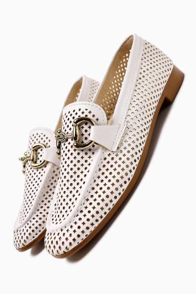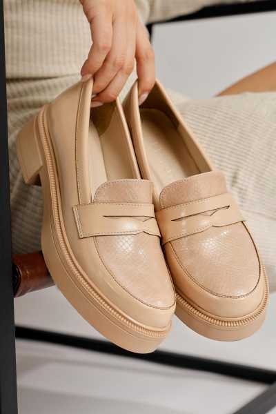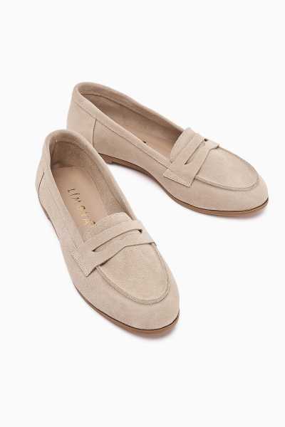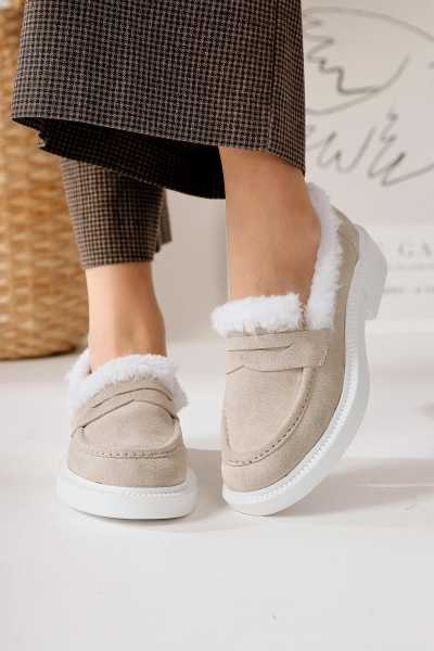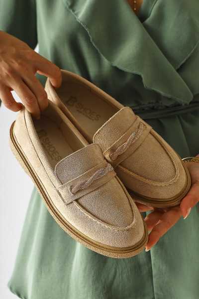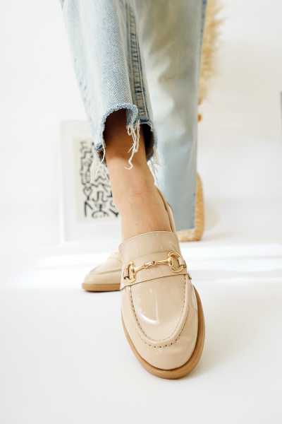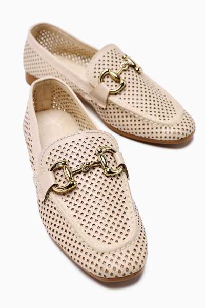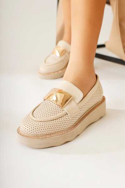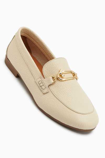 Alessa Hakiki Deri Bej Tokalı Loafer Kadın Günlük Makosen Ayakkabı
