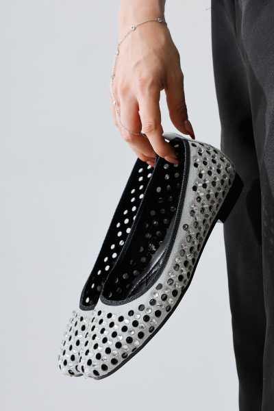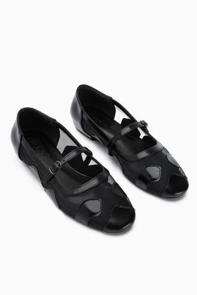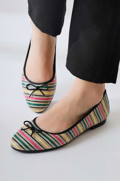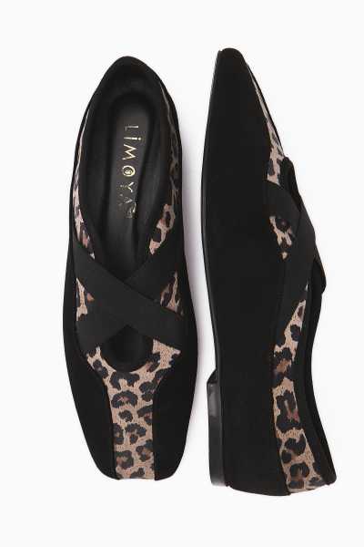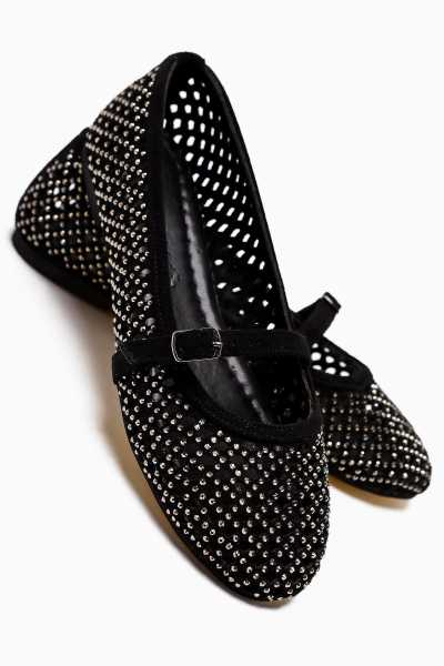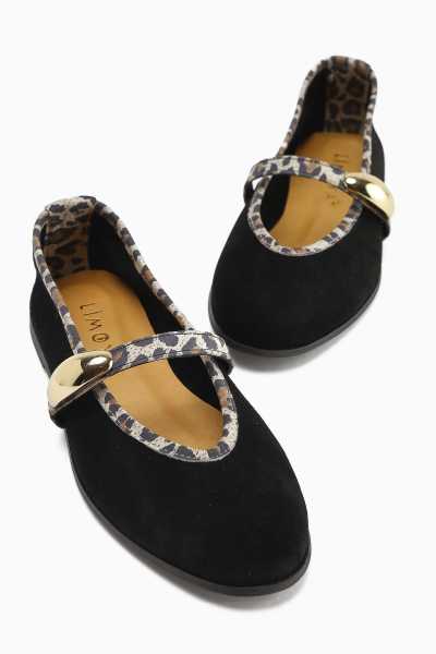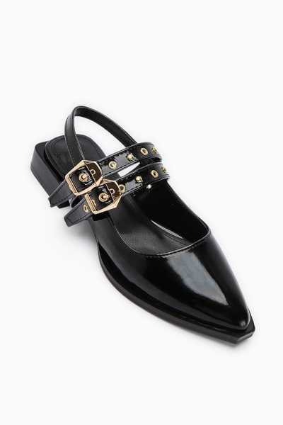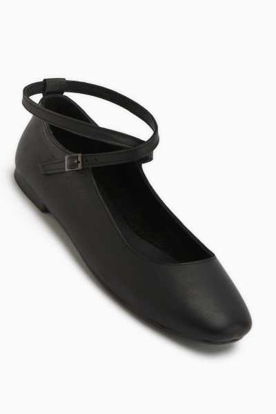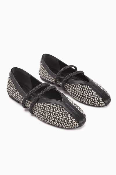Ameli Hakiki Deri Siyah Çapraz Bantlı Balerin Kadın Ayakkabısı