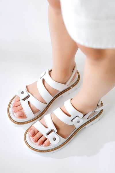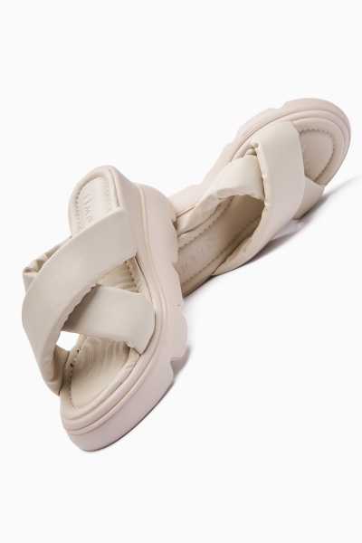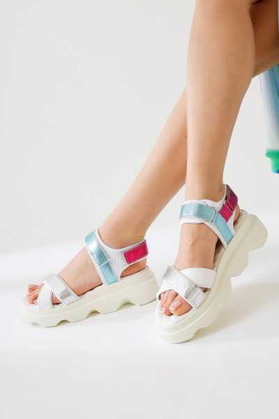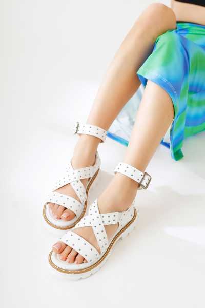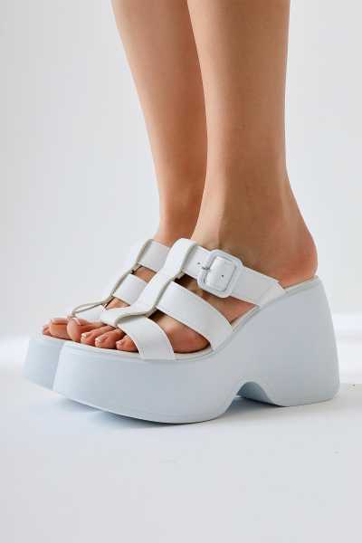 Margo Beyaz Çapraz Hasır Bantlı Dolgu Topuklu Sandalet