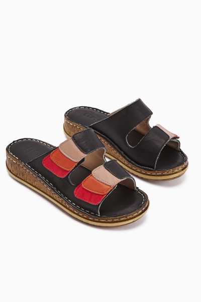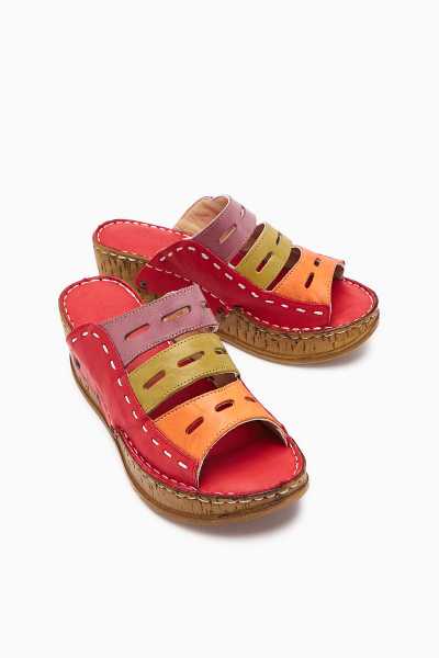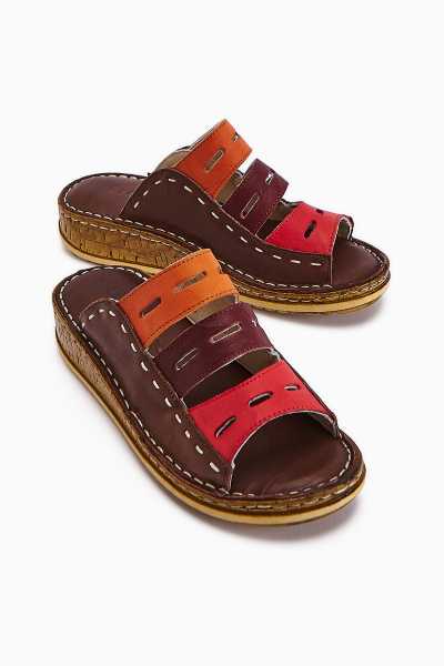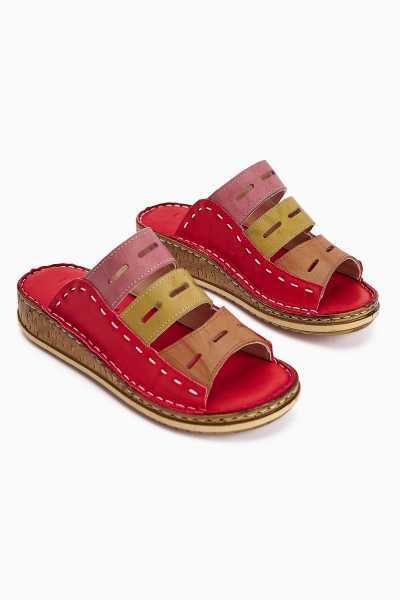 Hakiki Deri Etta Kırmızı Oranj Yeşil Mor Lazer Kesim Terlik (Tam Ortapedik Terlik)