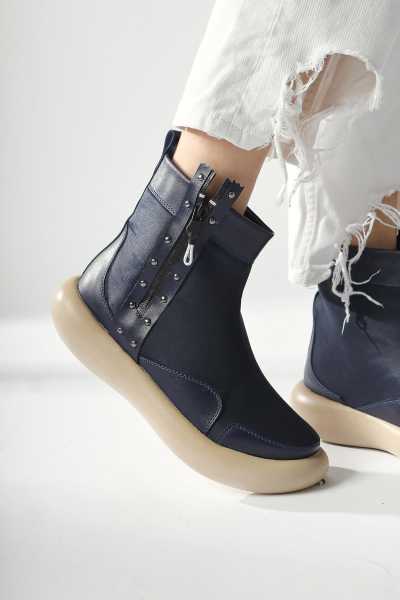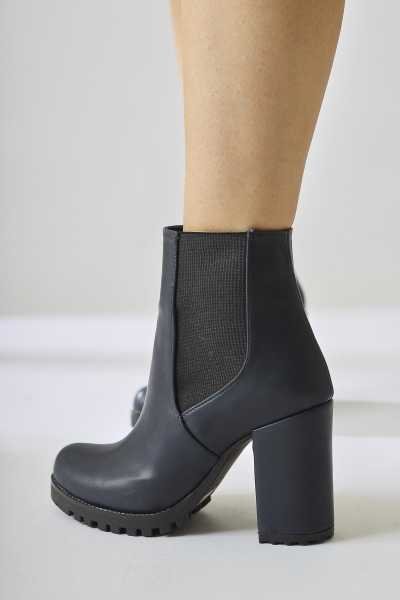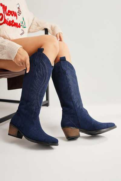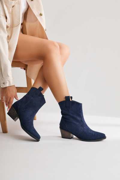 Margot Lacivert Küt Burunlu Topuklu Kadın Bot