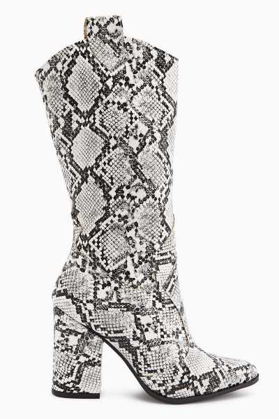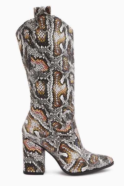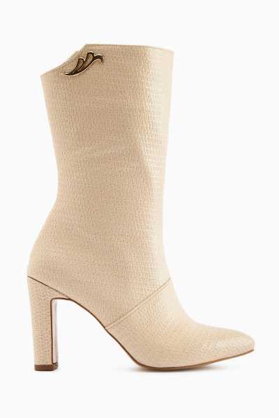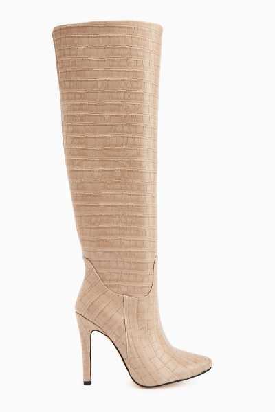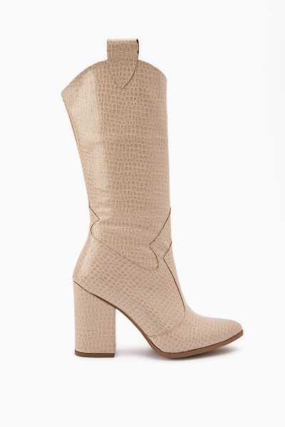 Aria Bej Kroko Desenli Topuklu Kadın Çizme
