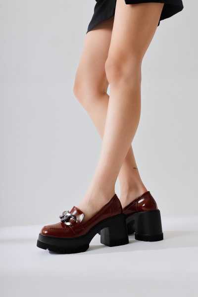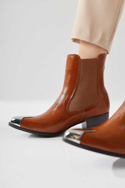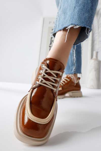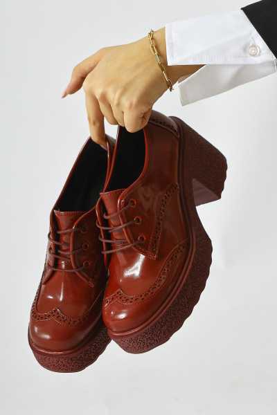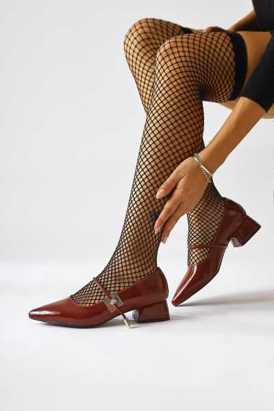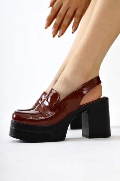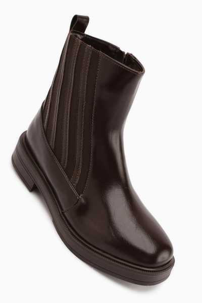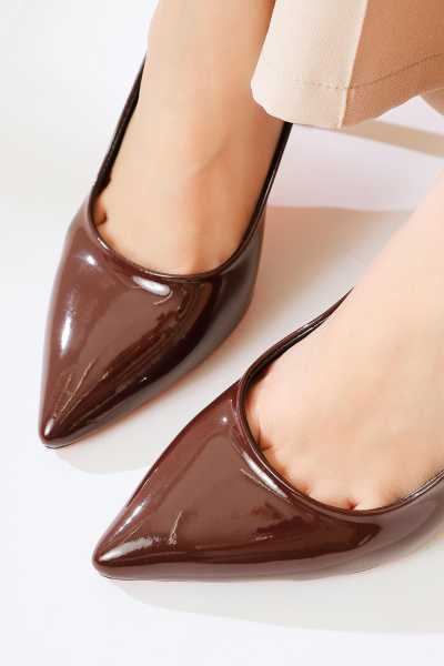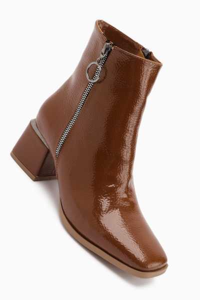 Sussi Kahve Rugan Topuklu Kadın Bot