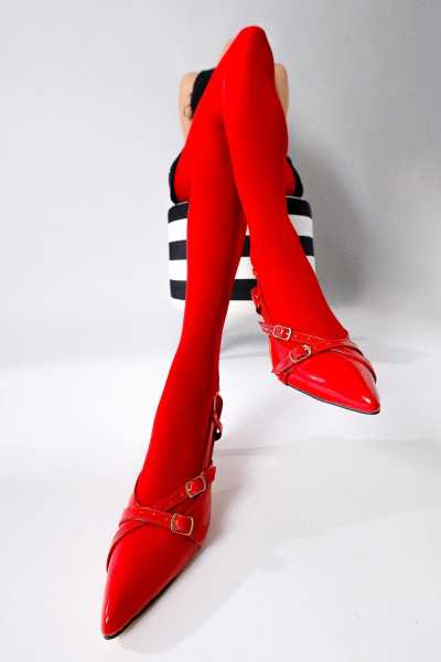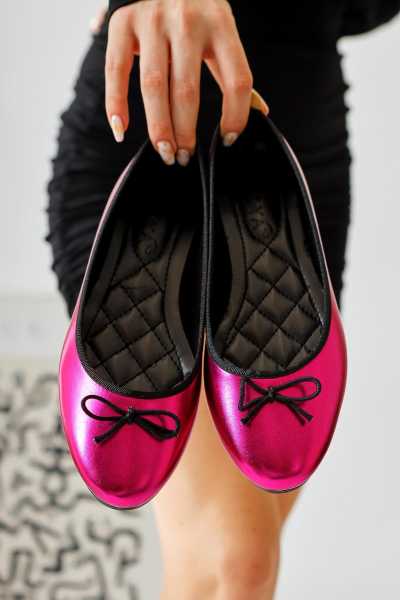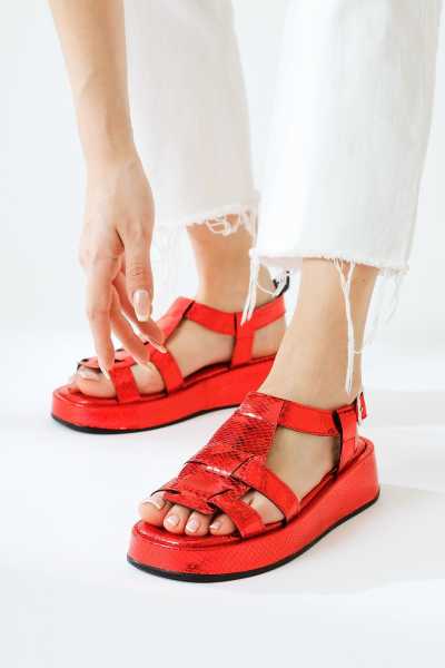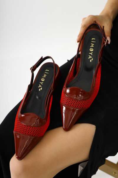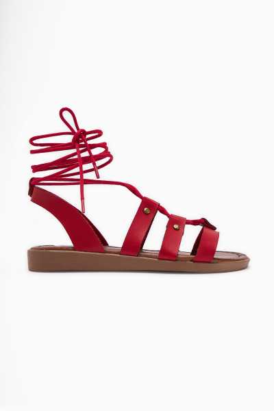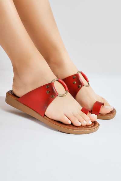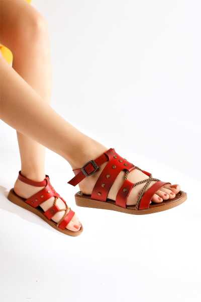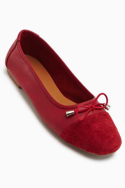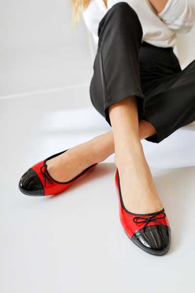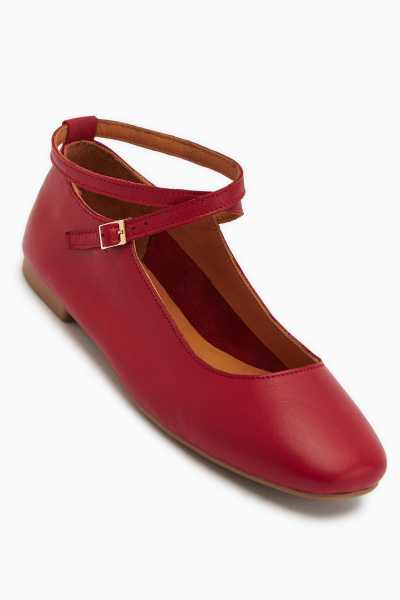 Ameli Hakiki Deri Kırmızı Çapraz Bantlı Balerin Kadın Ayakkabısı
