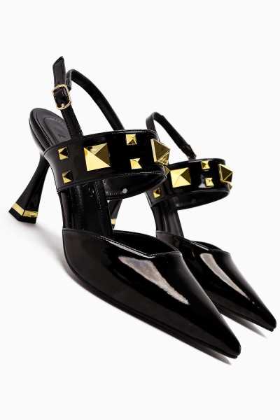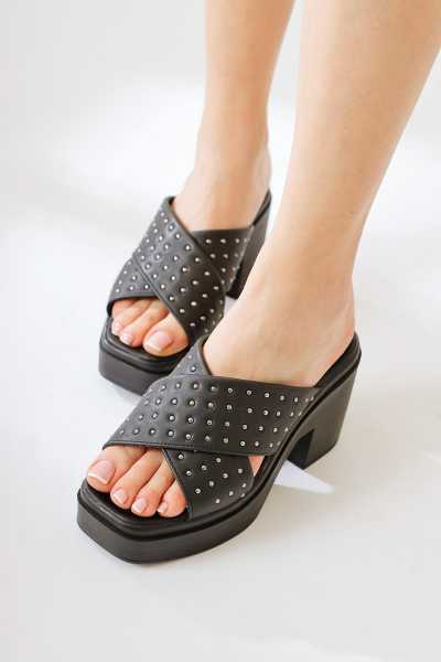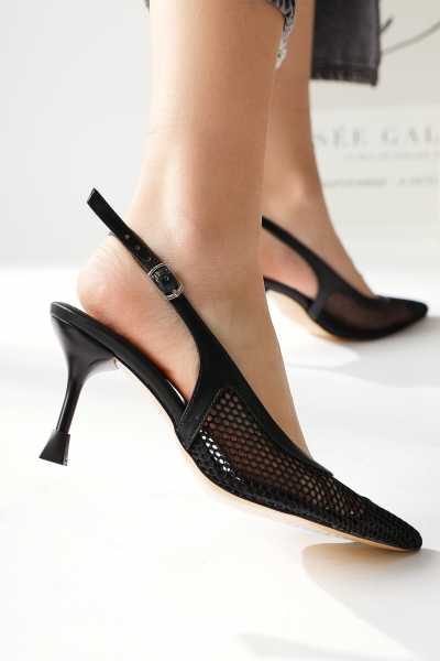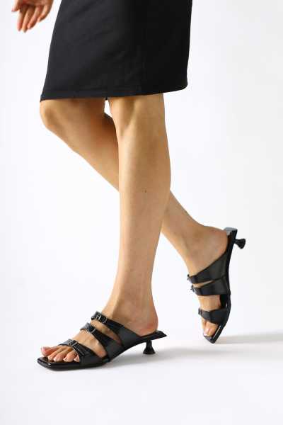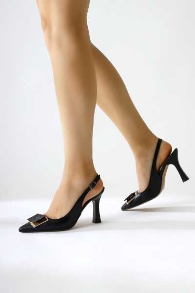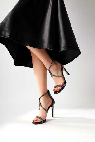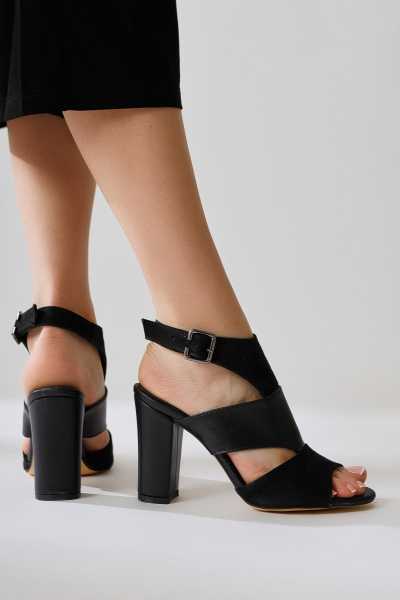 Magdalena Siyah Yüksek Topuk Açık Burun Sandalet