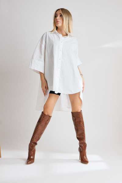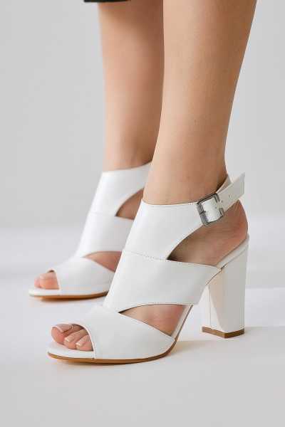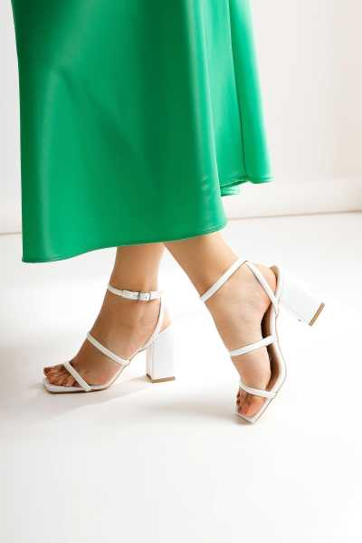 Magdalena Beyaz Yüksek Topuk Açık Burun Sandalet