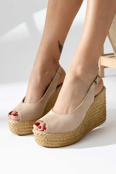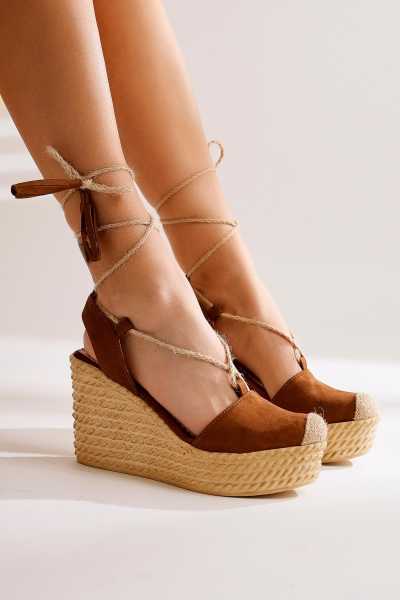Ashlynn Laci Ten Süet Hasır Bantlı Dolgu Topuklu