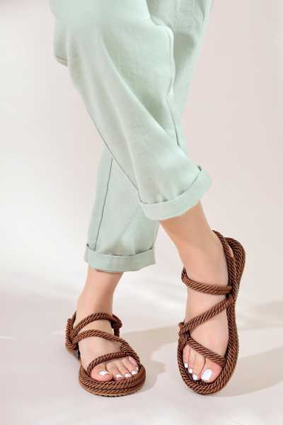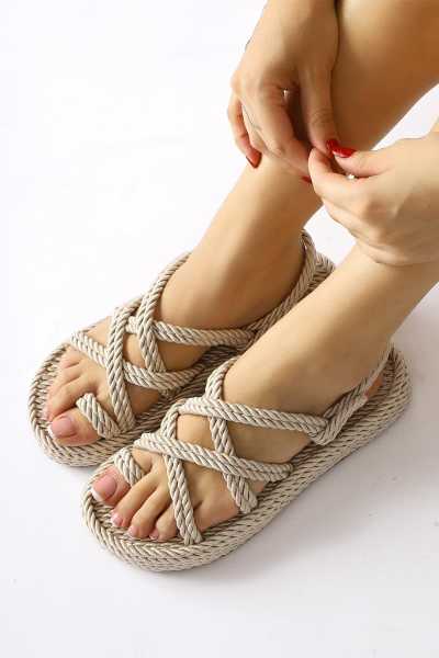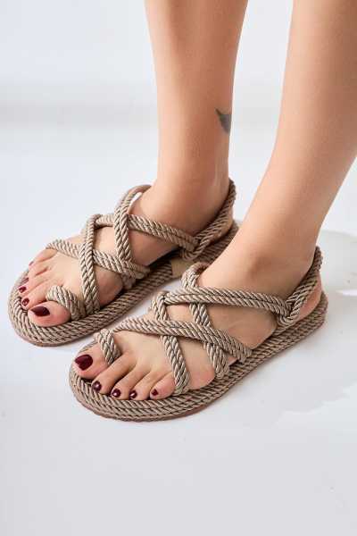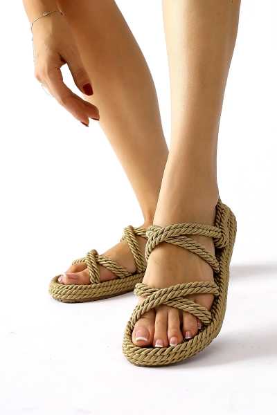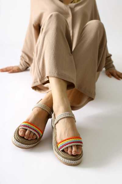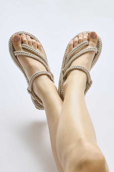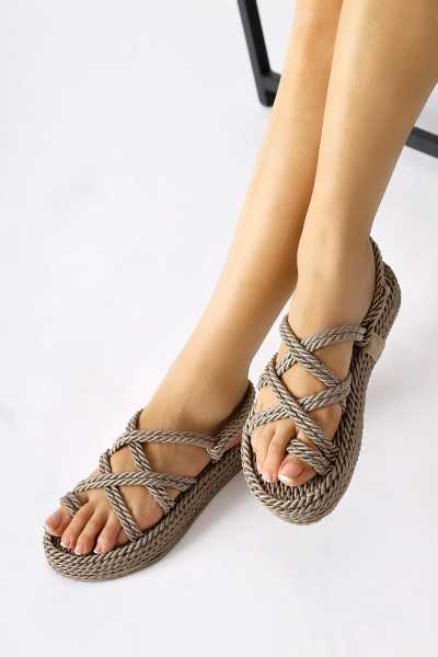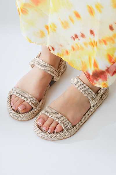 Pauletta Altın Halat Detaylı Sandalet
