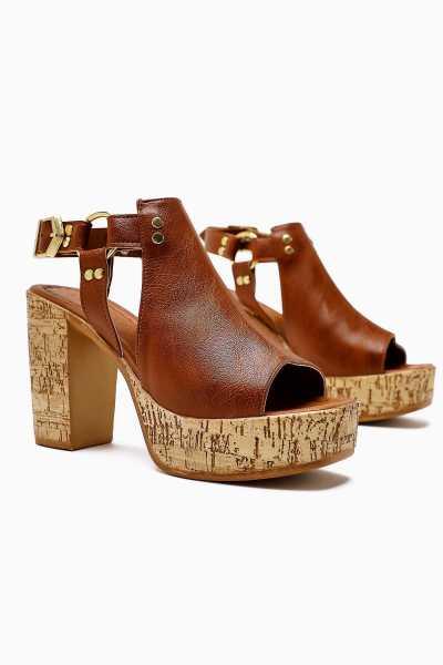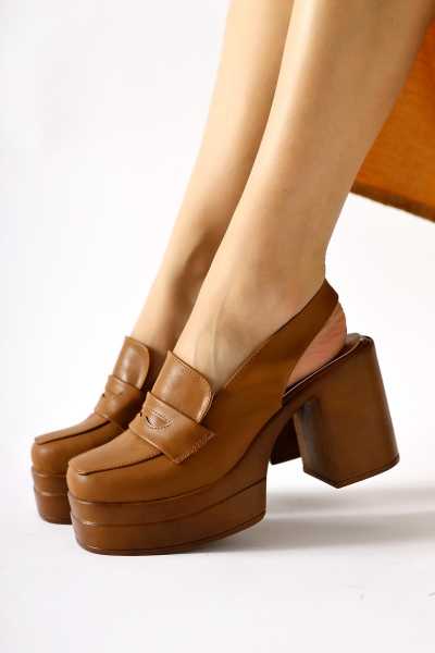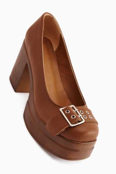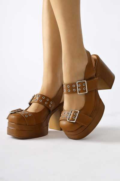 Naomi Kahve Kemerli Platform Topuklu Kadın Ayakkabı