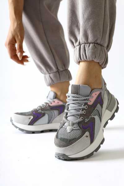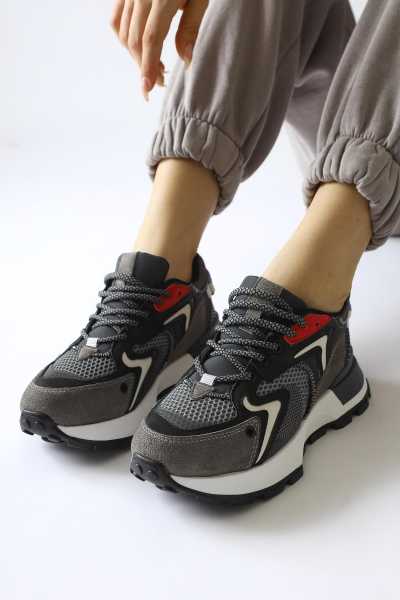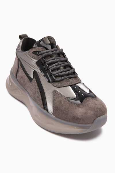 Rita Gri Süet Kalın Tabanlı Günlük Sneaker Ayakkabı