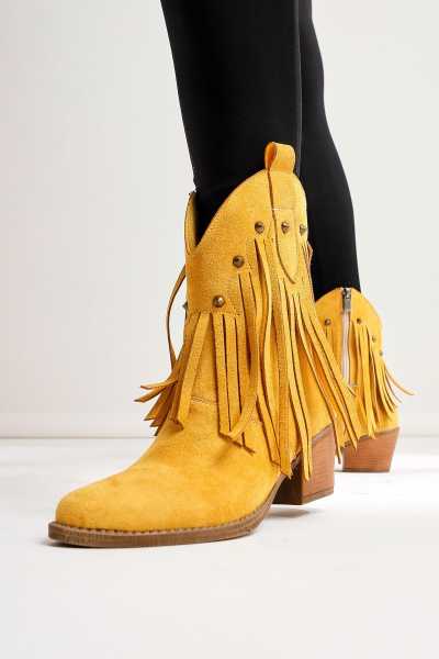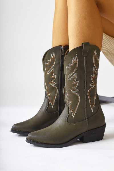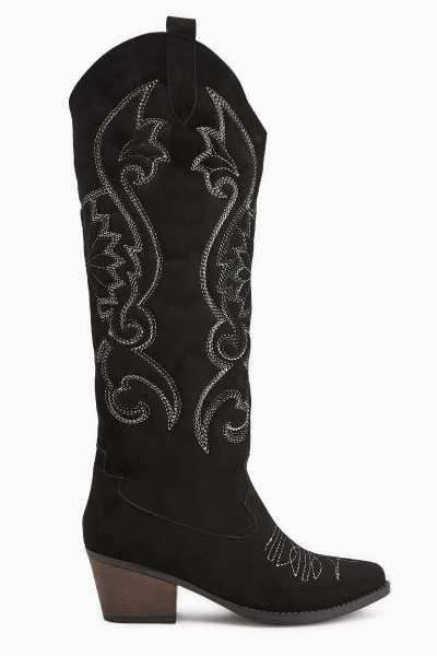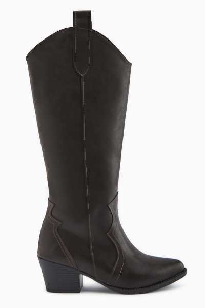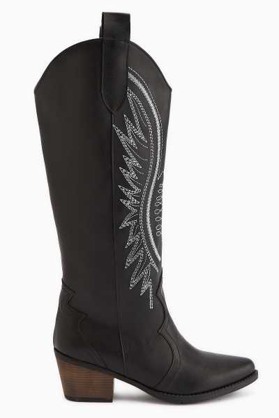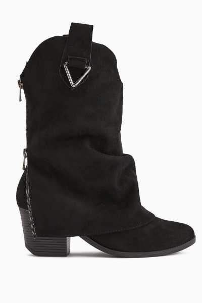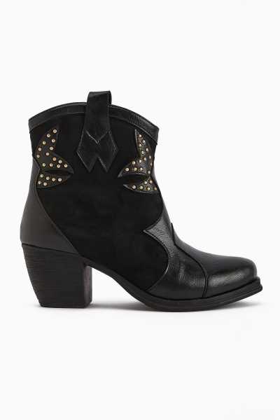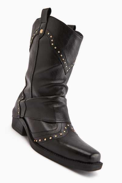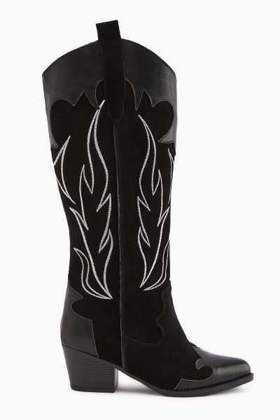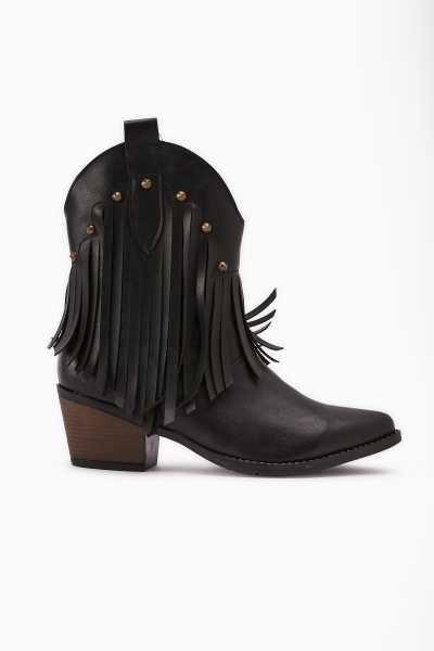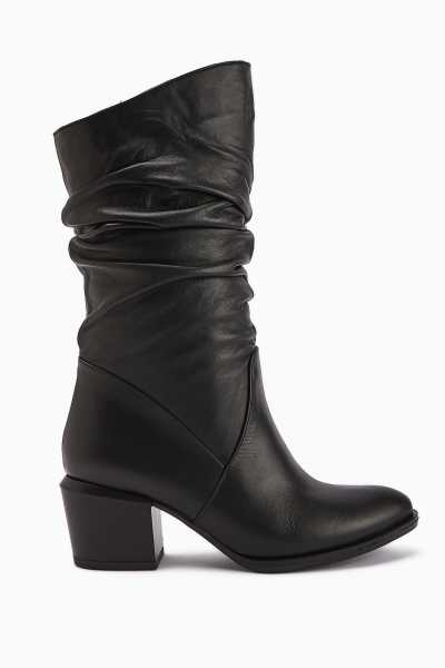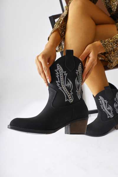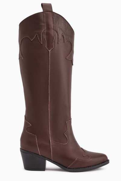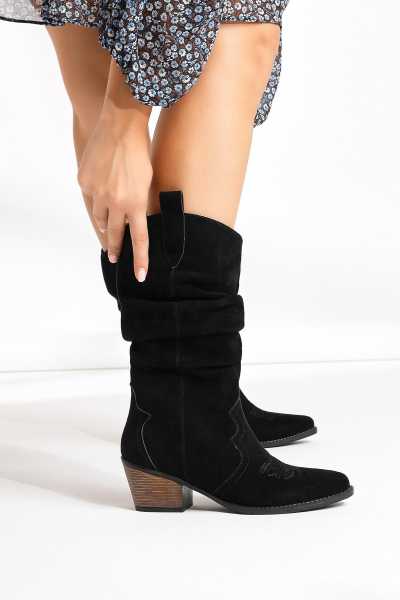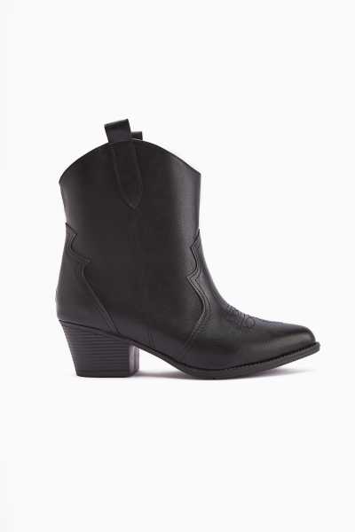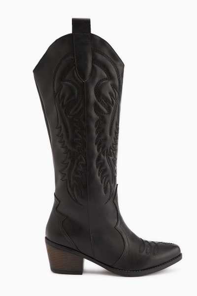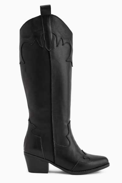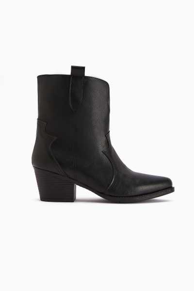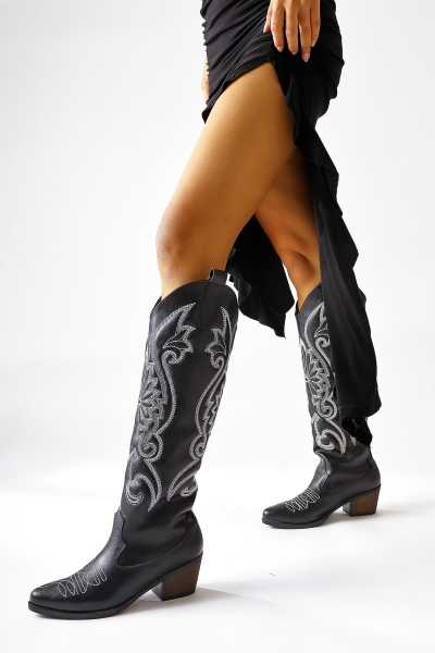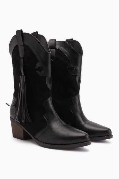 Lara Hakiki Deri Siyah Topuklu Western Çizme