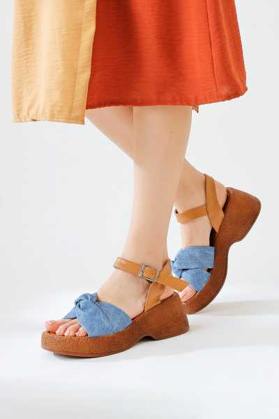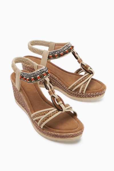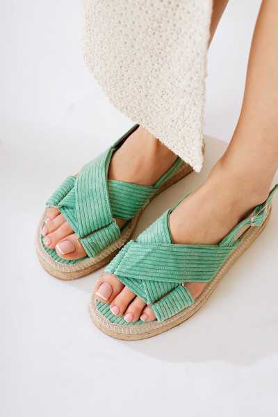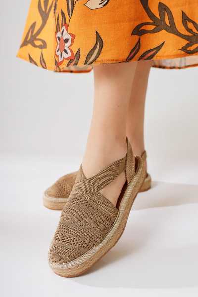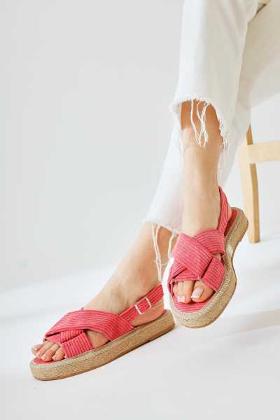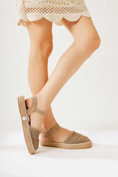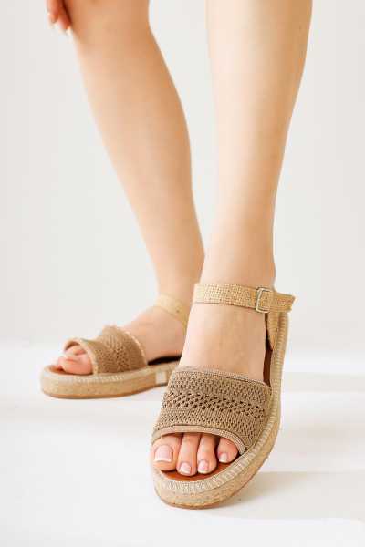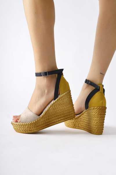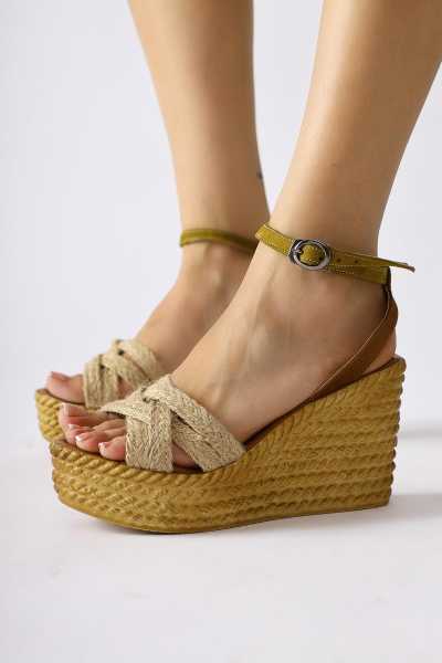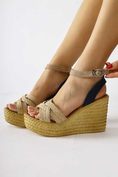 Bella Taba Süet Dolgu Tabanlı Hasır Bilekten Bağlamalı Sandalet