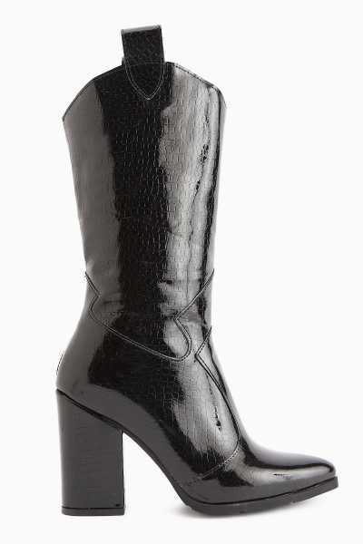 Aria Siyah Kroko Desenli Topuklu Kadın Çizme