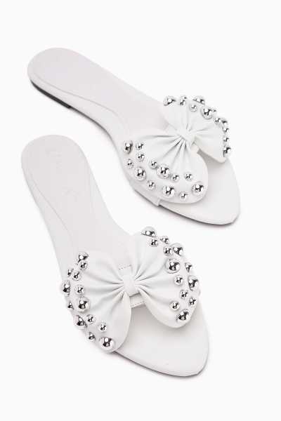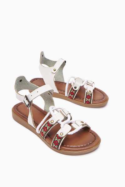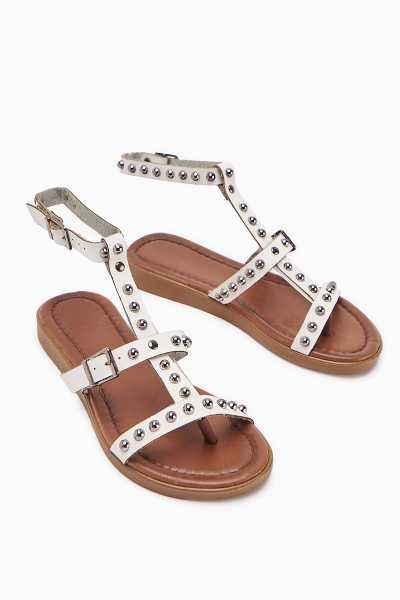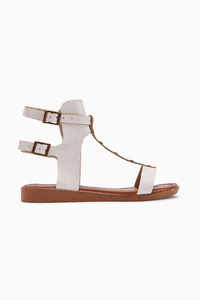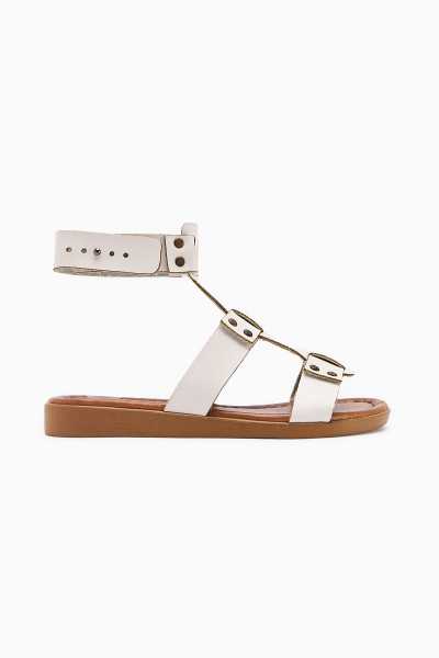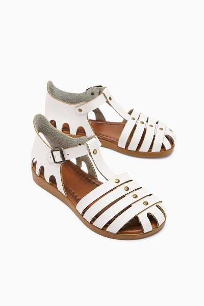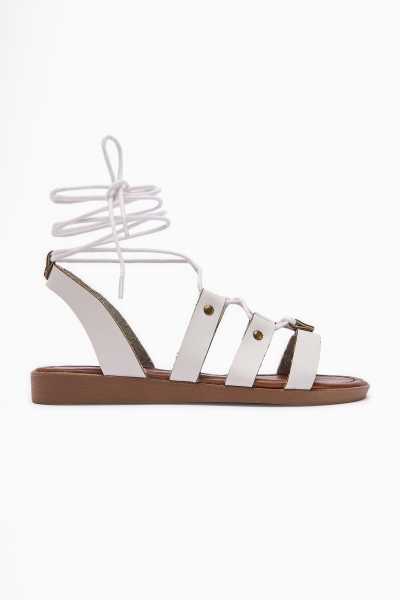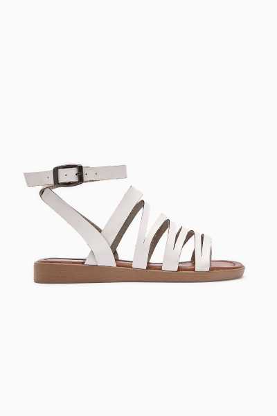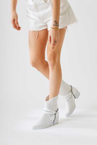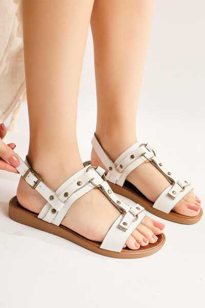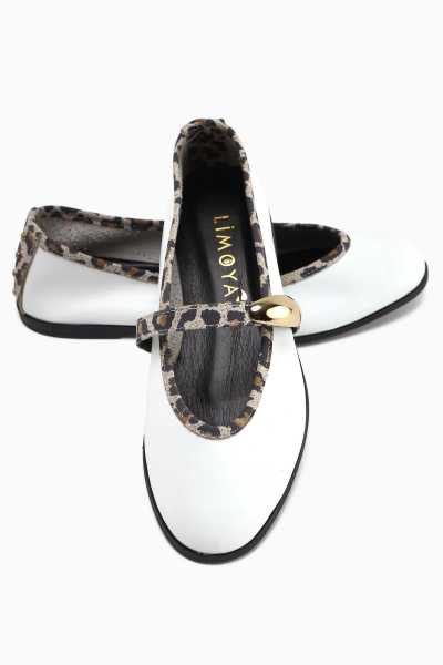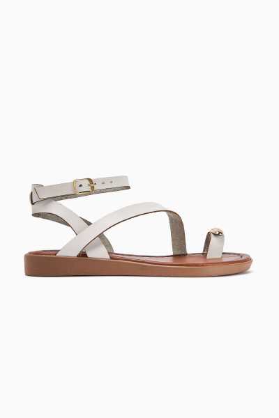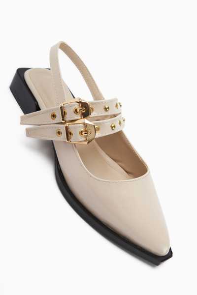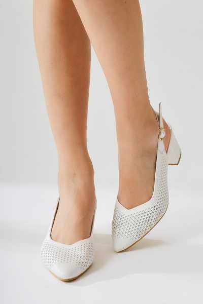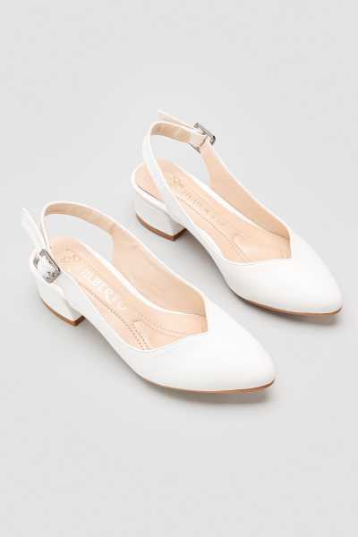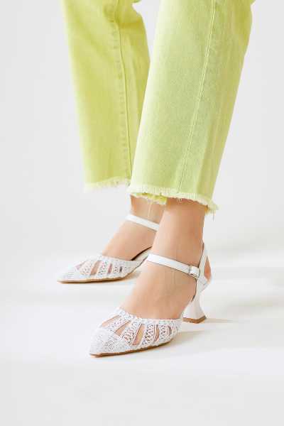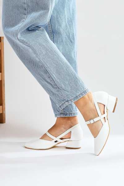 Jannie Beyaz Sivri Burun Bilekten Baretli Alçak Topuk Sandalet