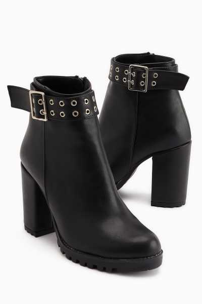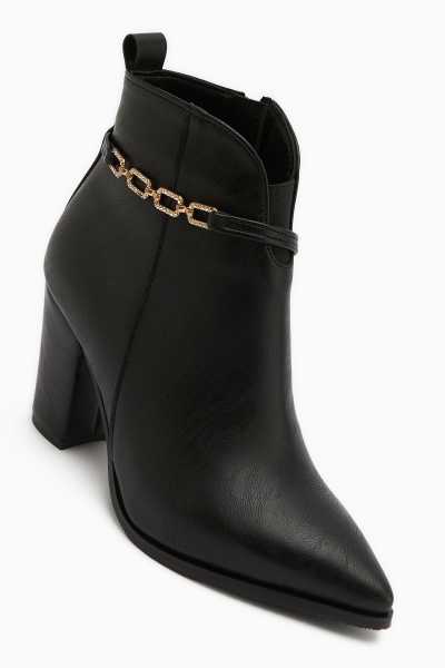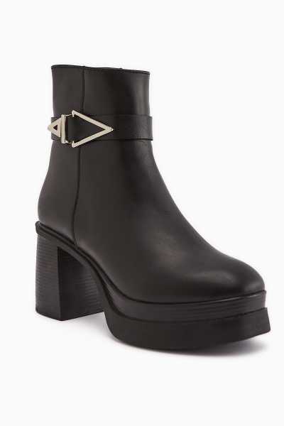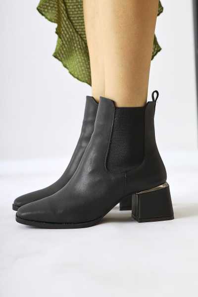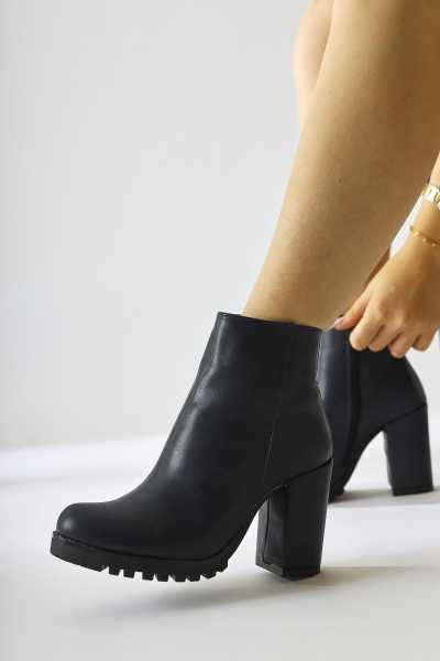 Margot Siyah Küt Burunlu Topuklu Kadın Bot