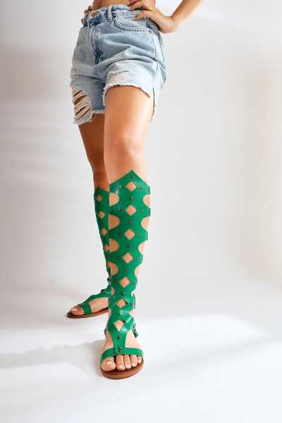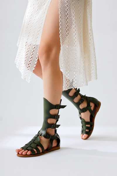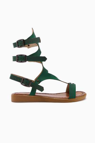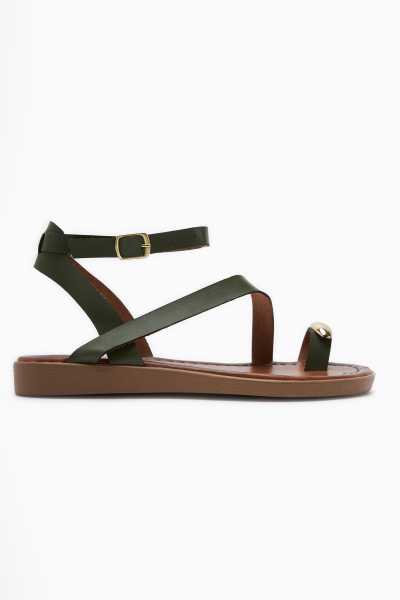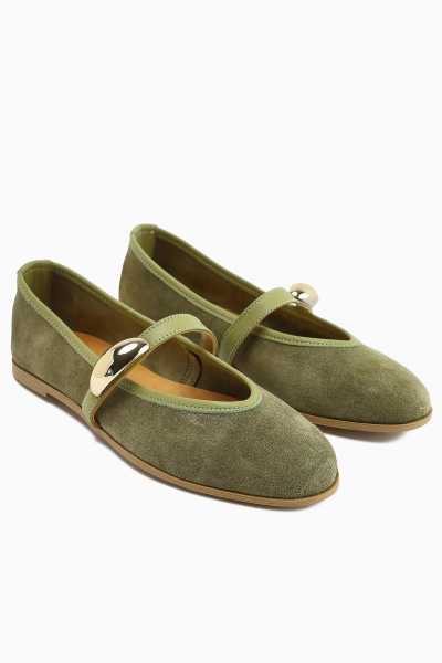 Scarlett Haki Laci Ten Süet Kemerli Dolgu Taban Sandalet