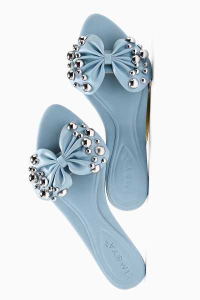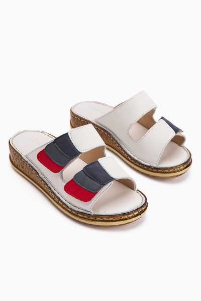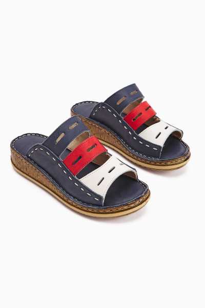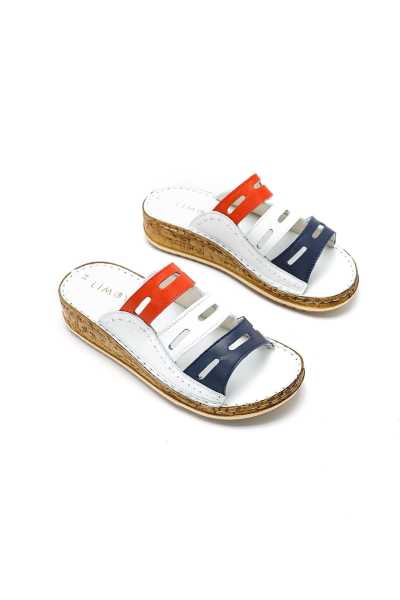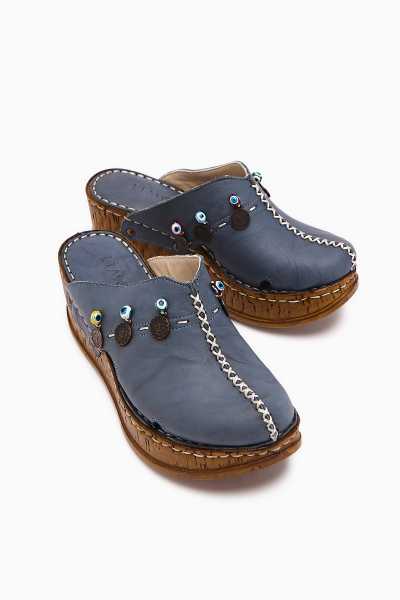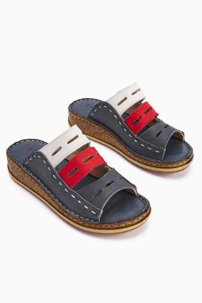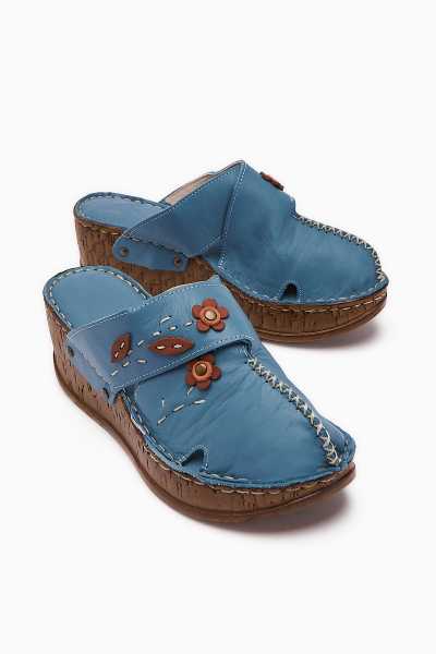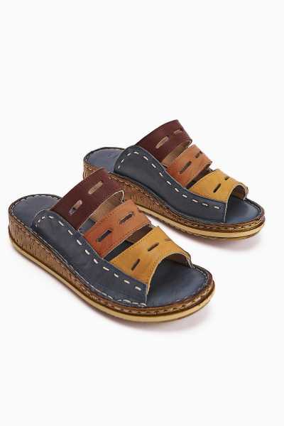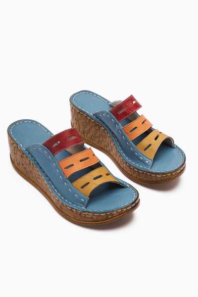 Hakiki Deri Etta Kot-Mavi Hardal Pudra Mor Lazer Kesim Terlik (Tam Ortapedik Terlik)