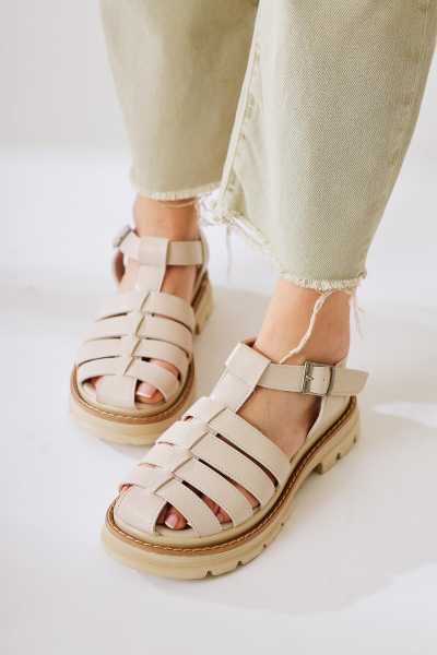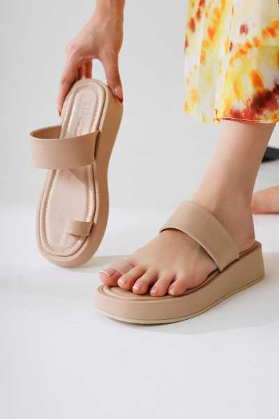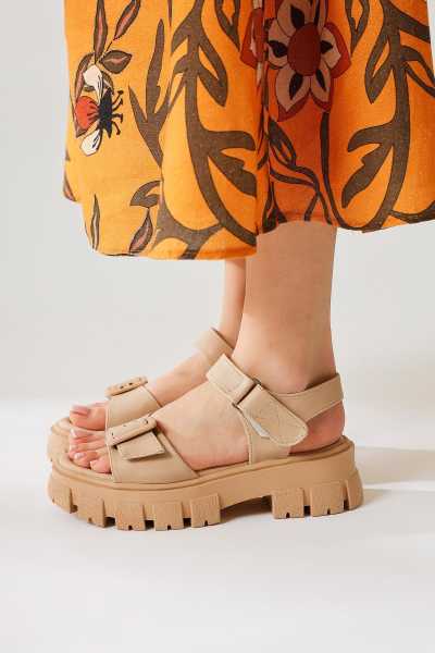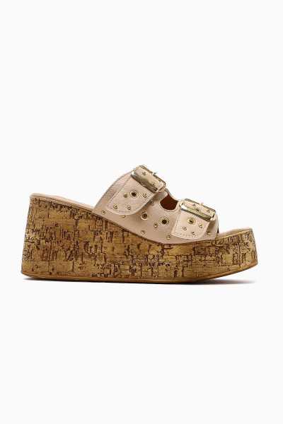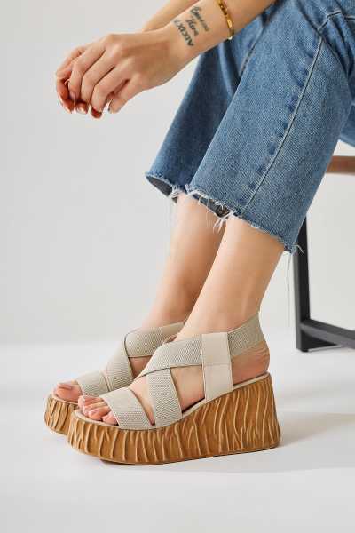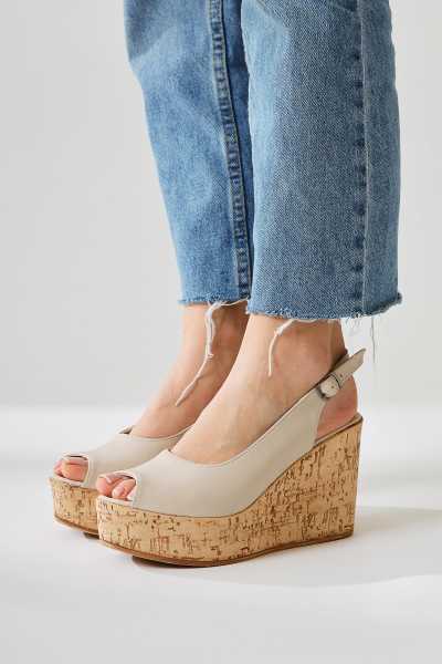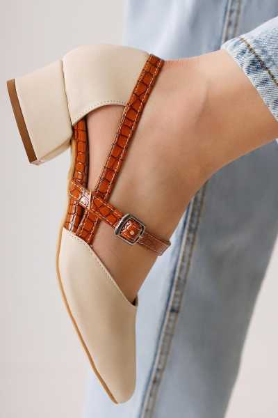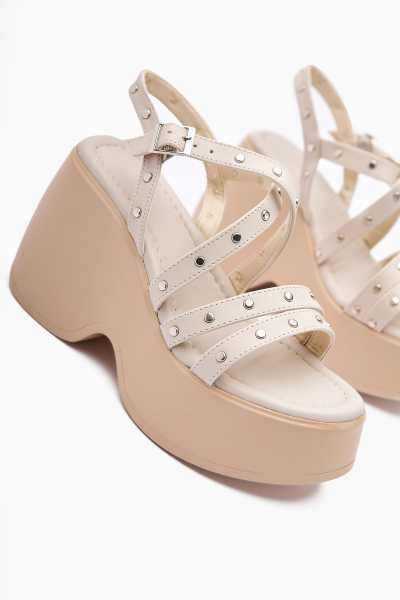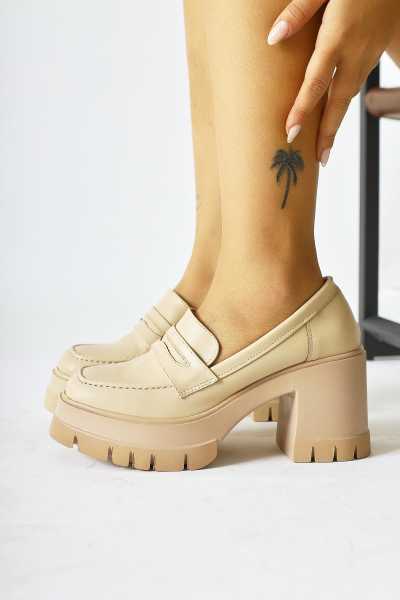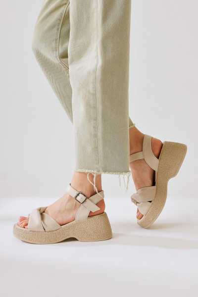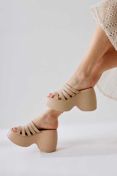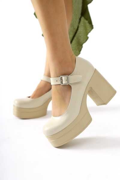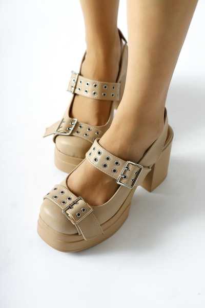 Naomi Bej Kemerli Platform Topuklu Kadın Ayakkabı