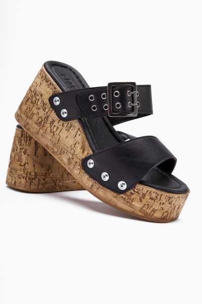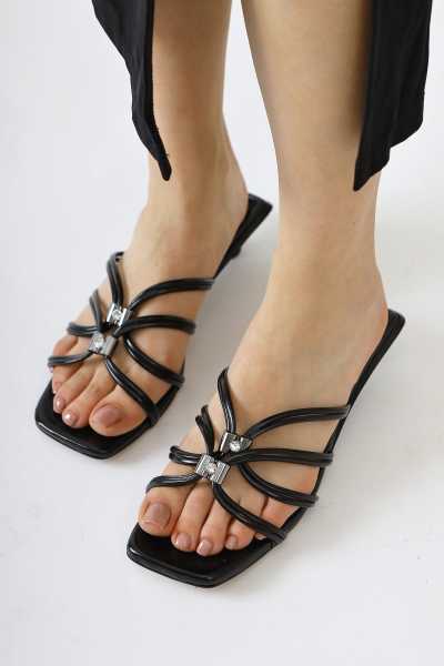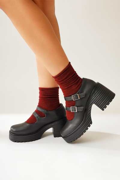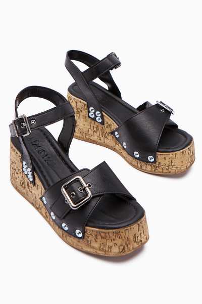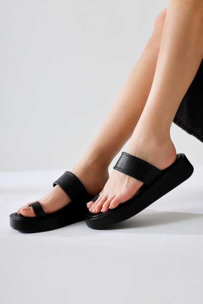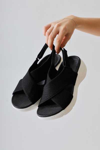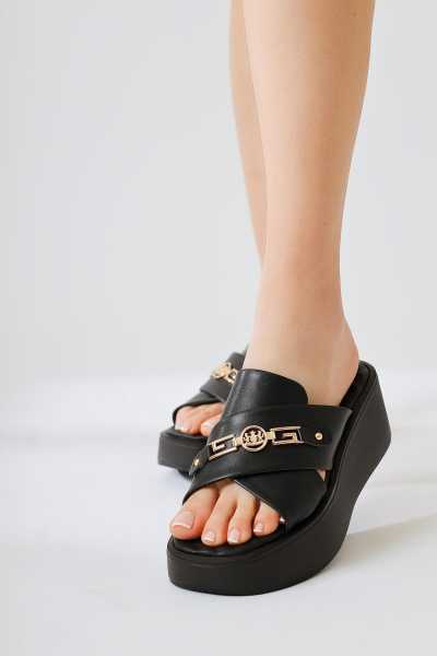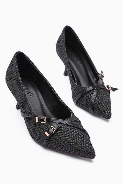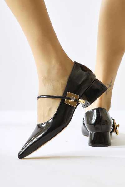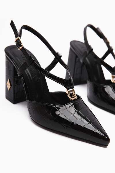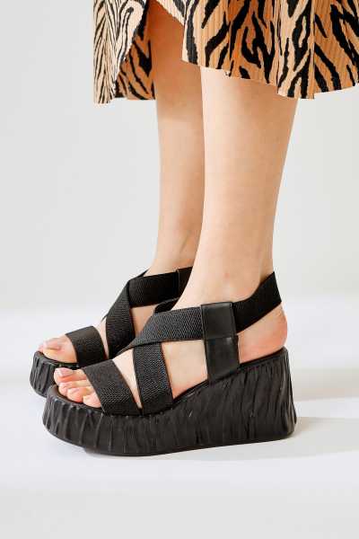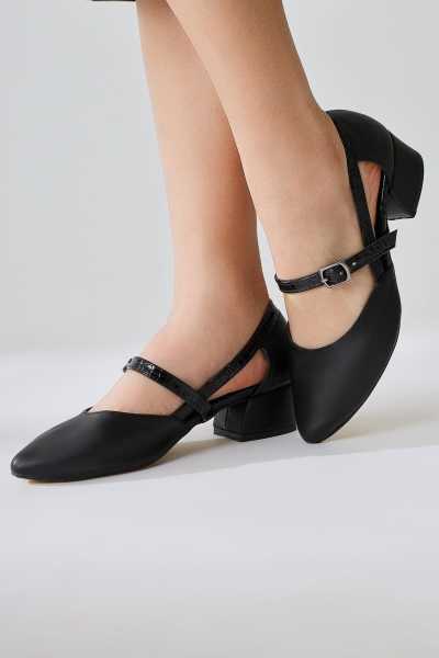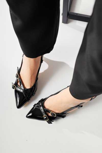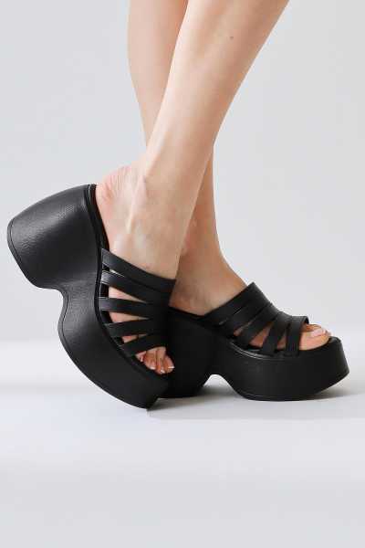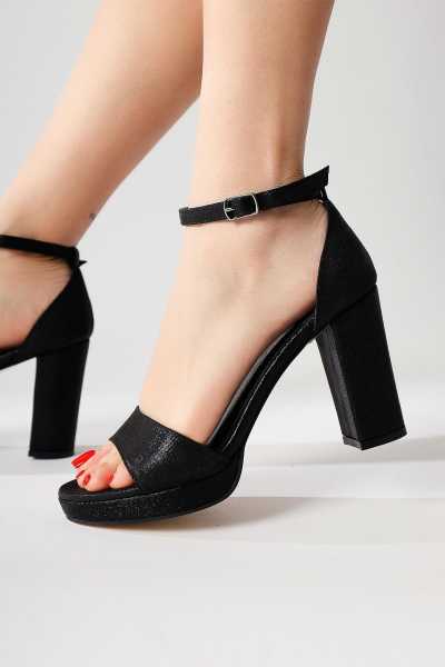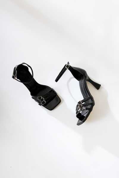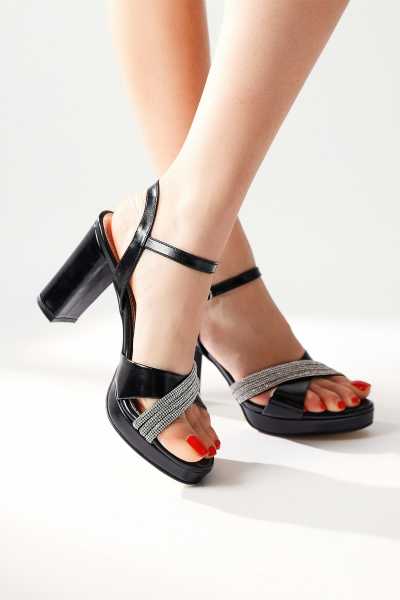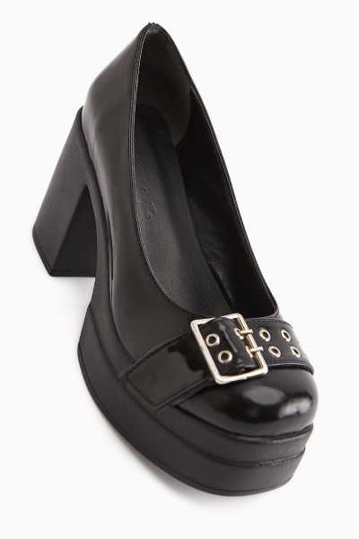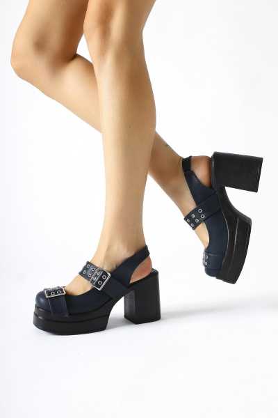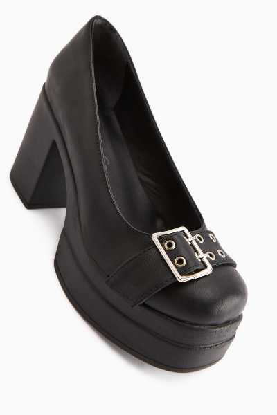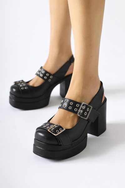 Naomi Siyah Kemerli Platform Topuklu Kadın Ayakkabı