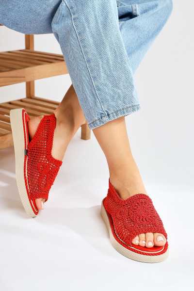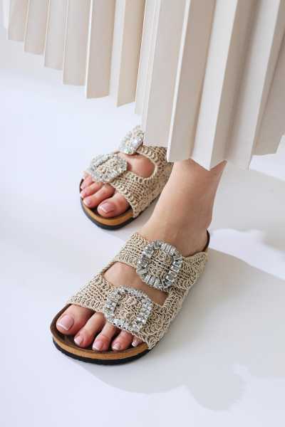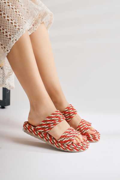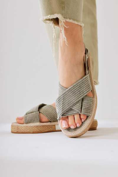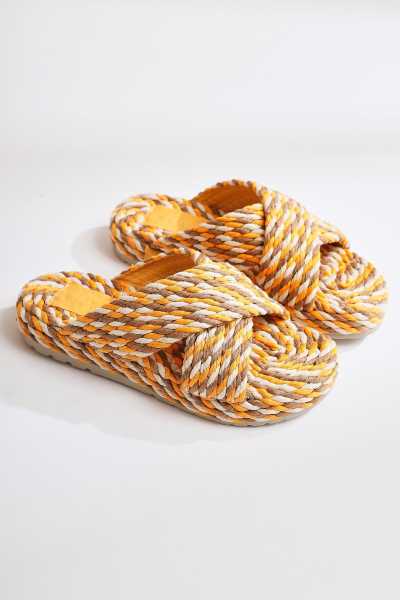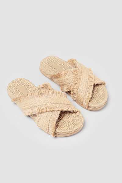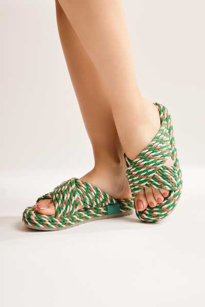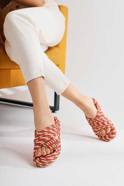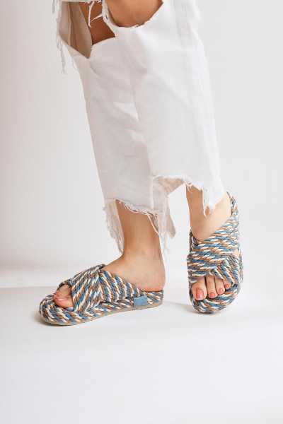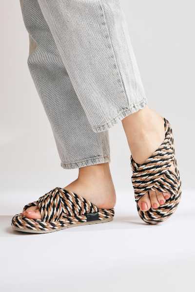 Rachael Ten Hasır Çapraz Kalın Bantlı Terlik