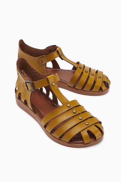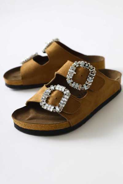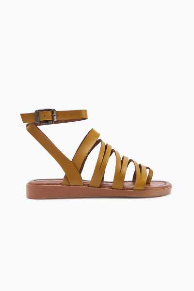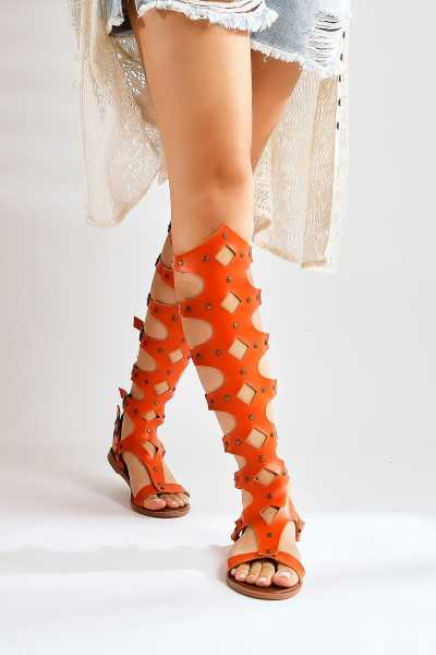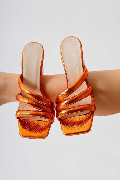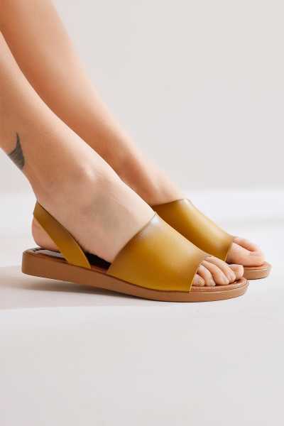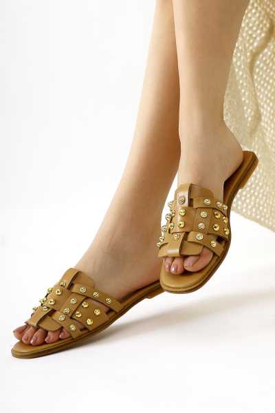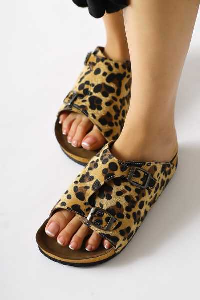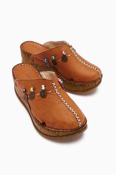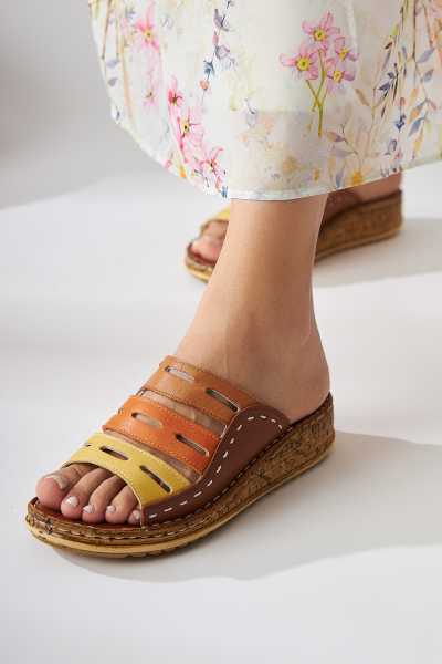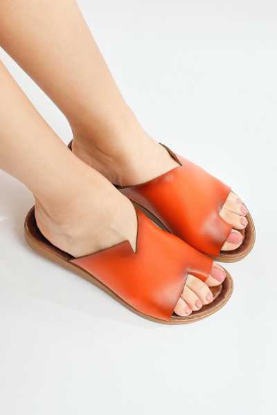 Hakiki Deri Joelle Taba Hardal Portakal Comfort Lazer Kesim Terlik