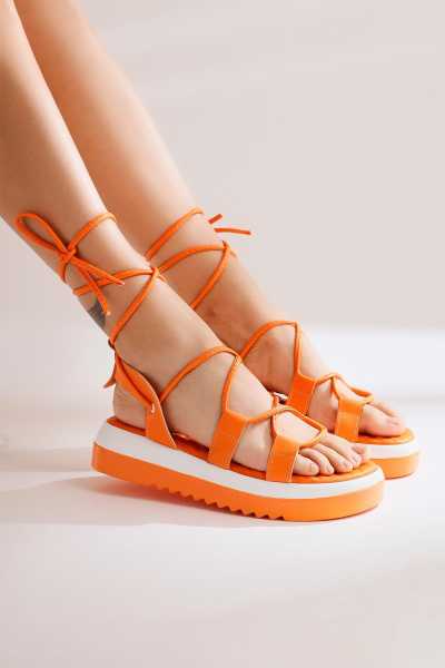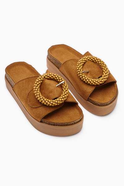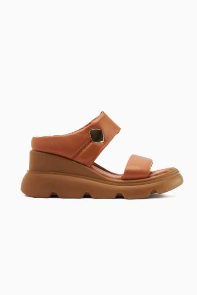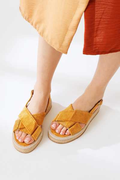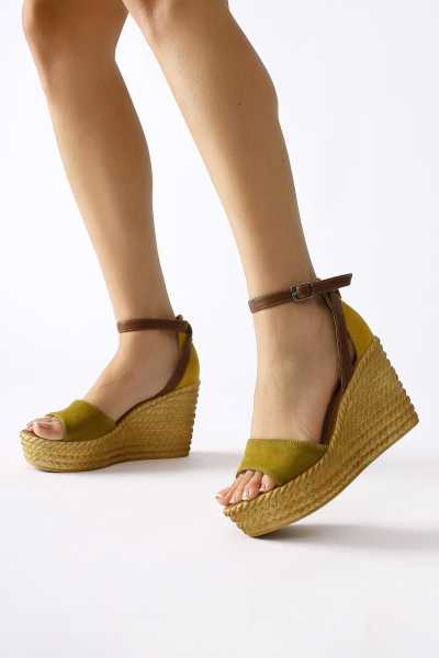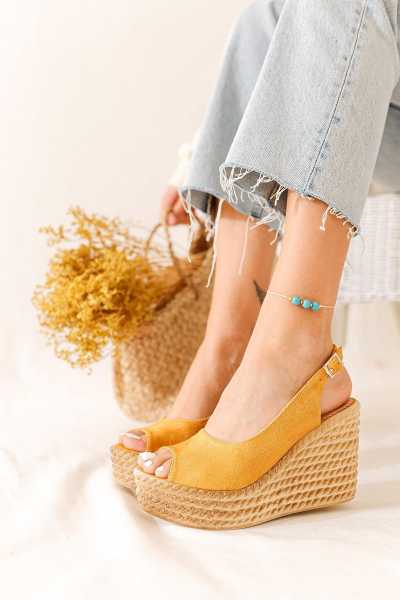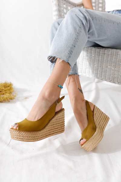 Ashlynn Taba Hardal Süet Hasır Bantlı Dolgu Topuklu