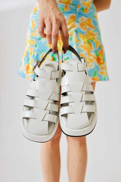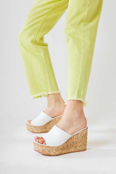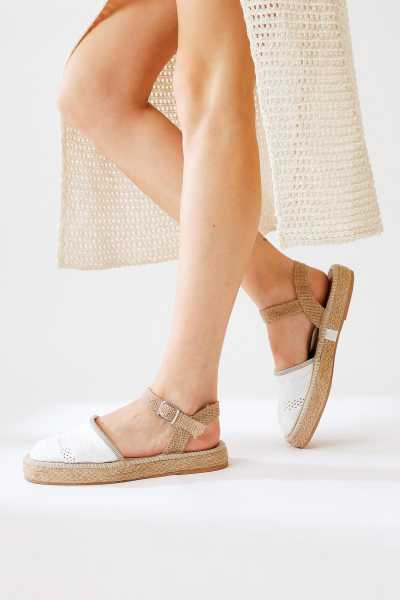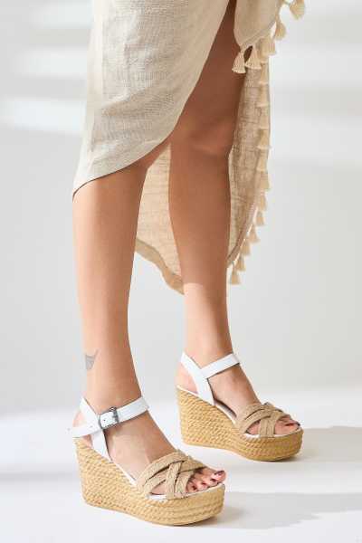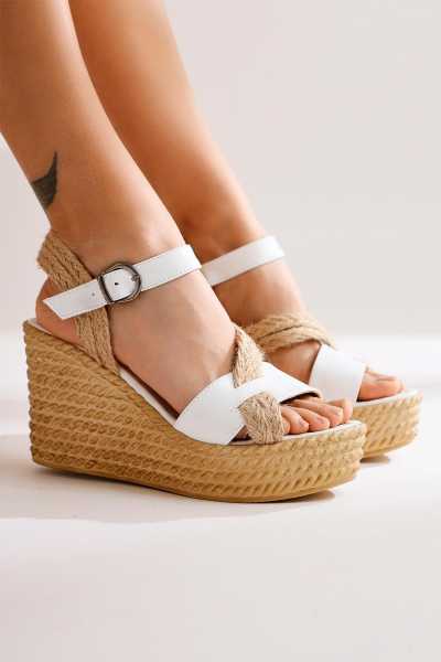 Ellie Beyaz Hasır Bantlı Kadın Dolgu Topuklu Ayakkabı