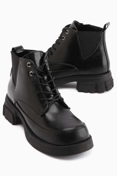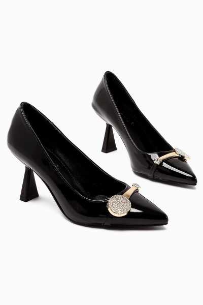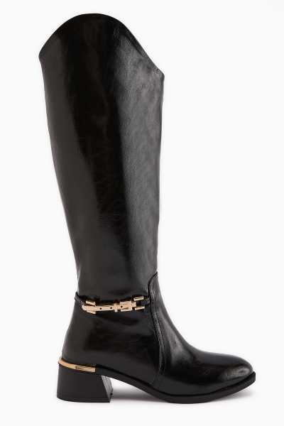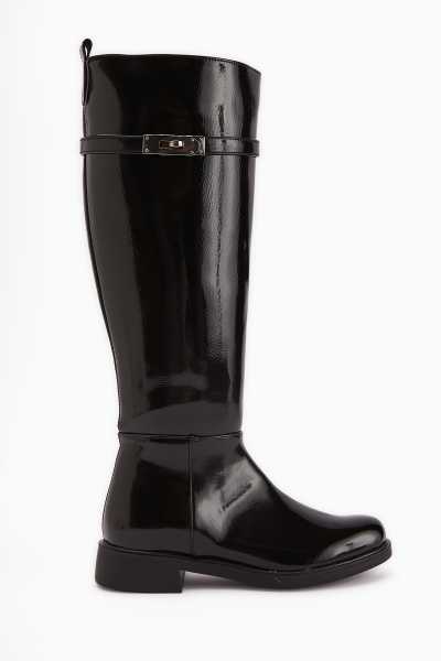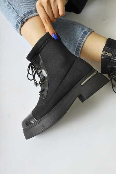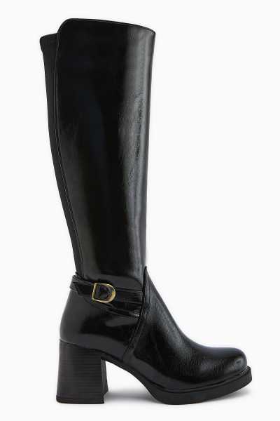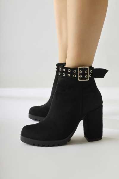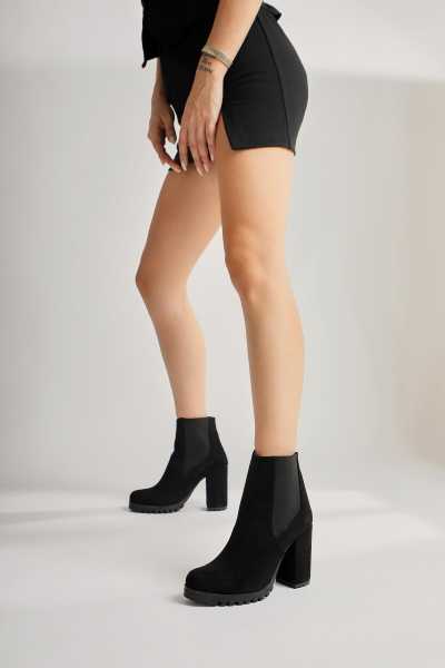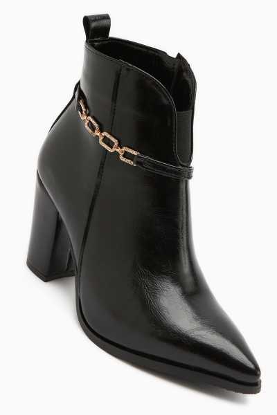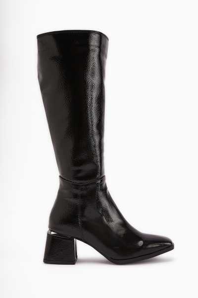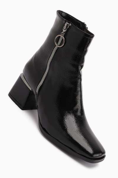 Sussi Siyah Rugan Topuklu Kadın Bot