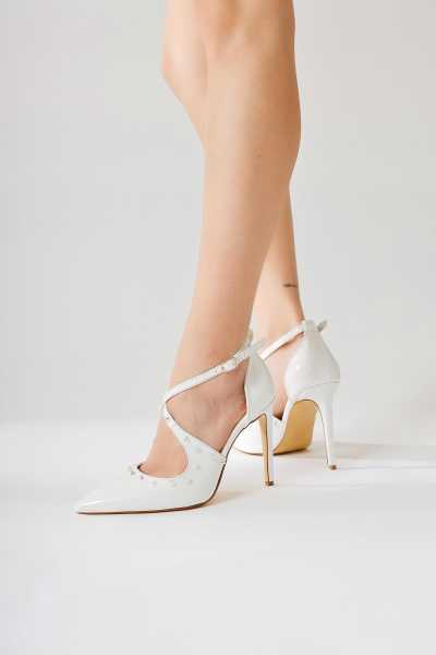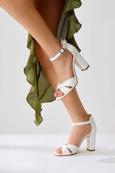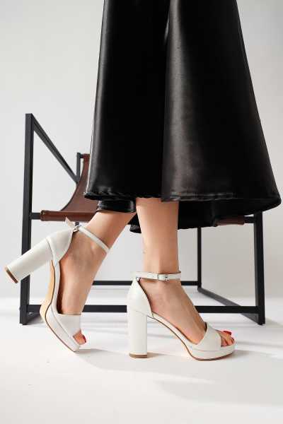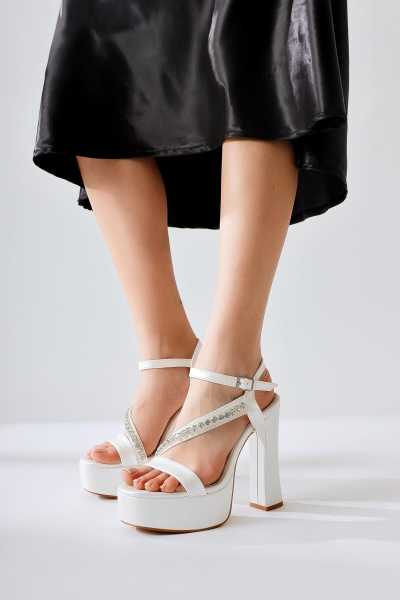 Hope Beyaz Bilekten Baretli Yüksek Topuk Topuklu Ayakkabı