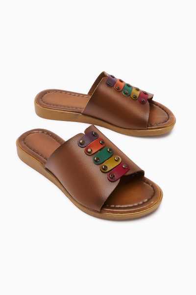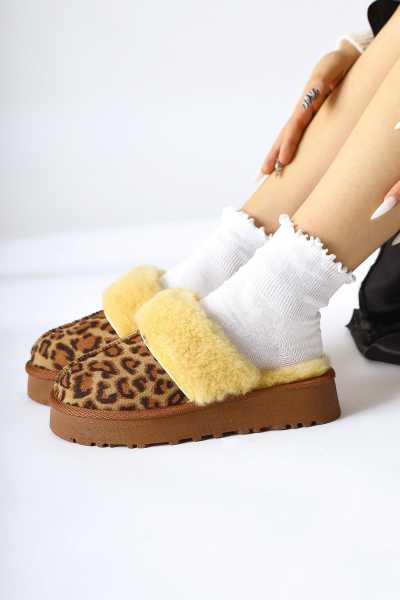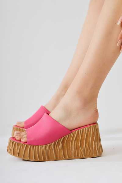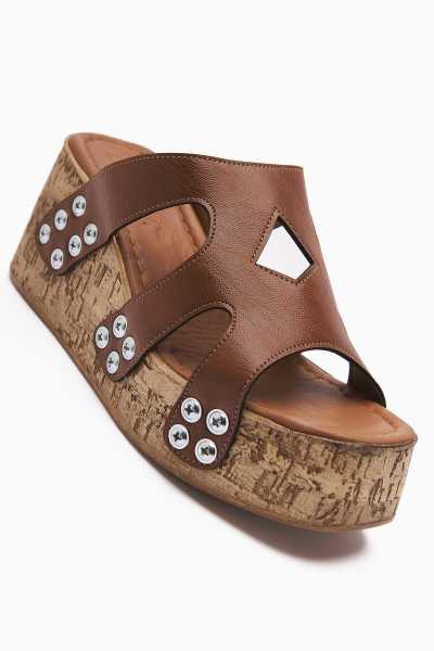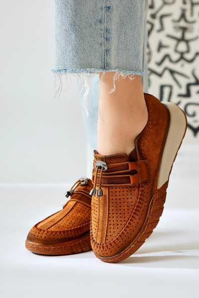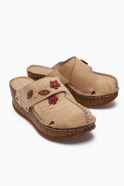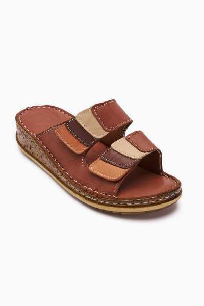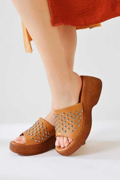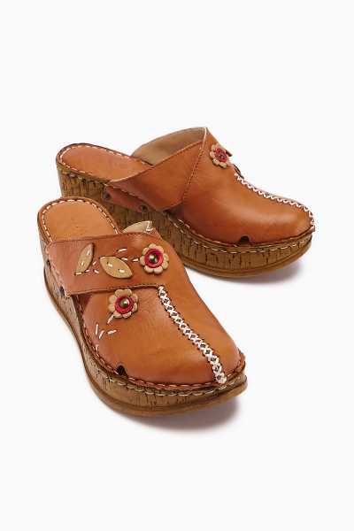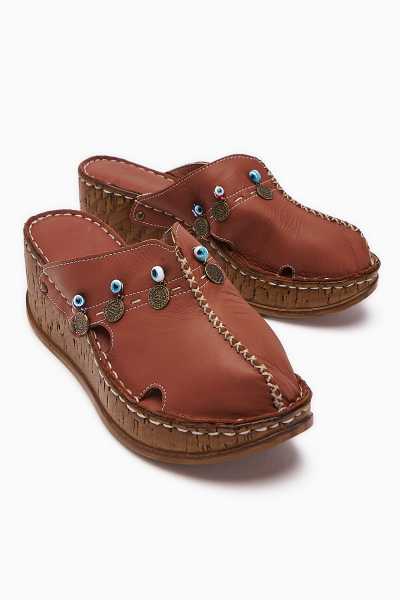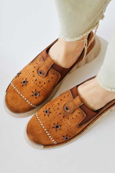 Hakiki Deri Etta Vizon Taba Oranj Pudra Lazer Kesim Terlik (Comfort Terlik)