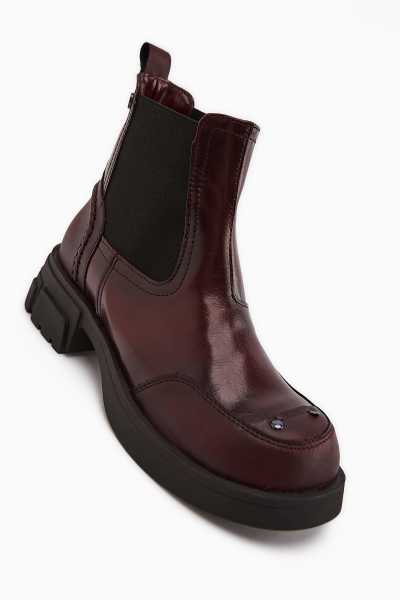 Margot Bordo Küt Burunlu Topuklu Kadın Bot