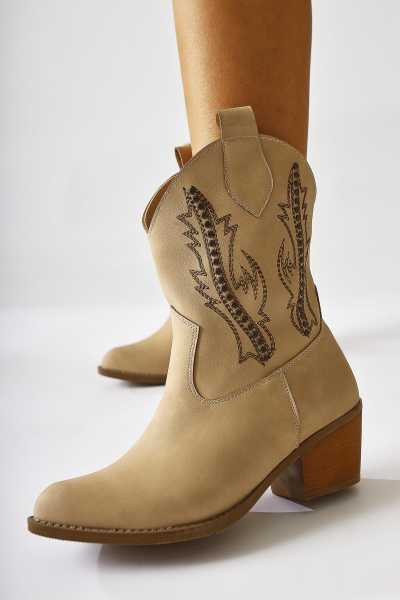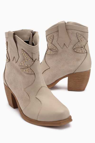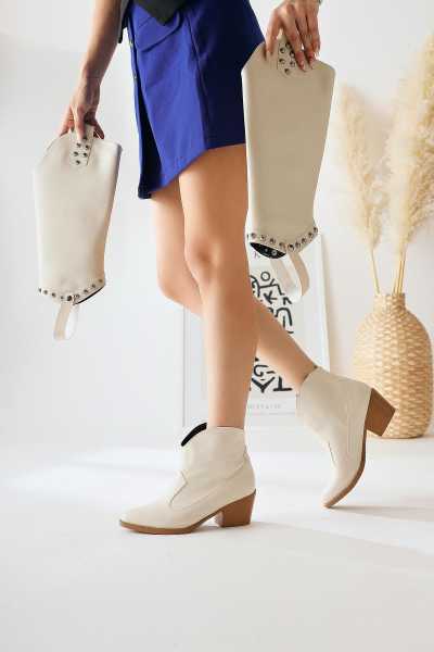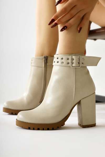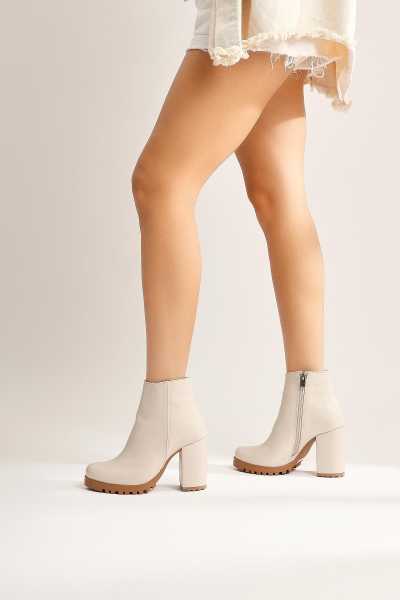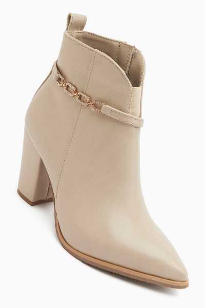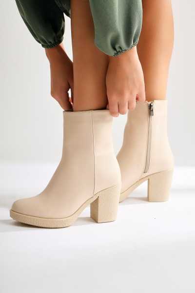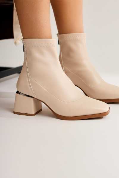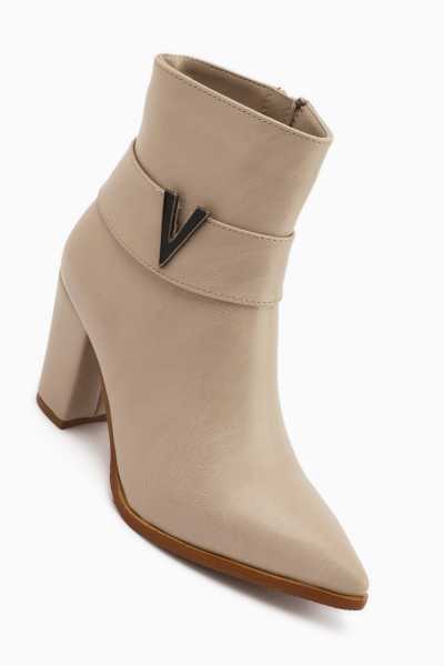 Margot Bej Küt Burunlu Topuklu Kadın Bot