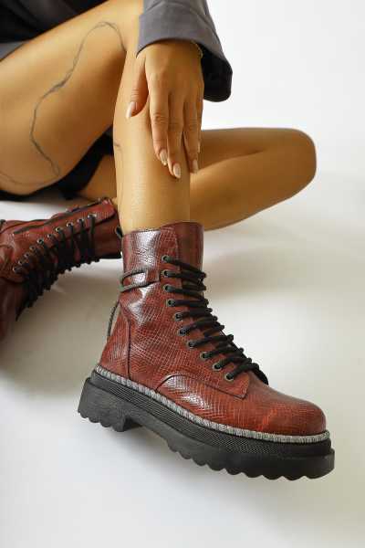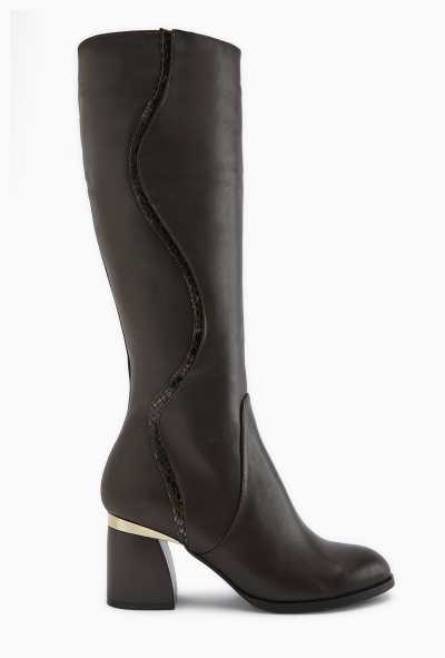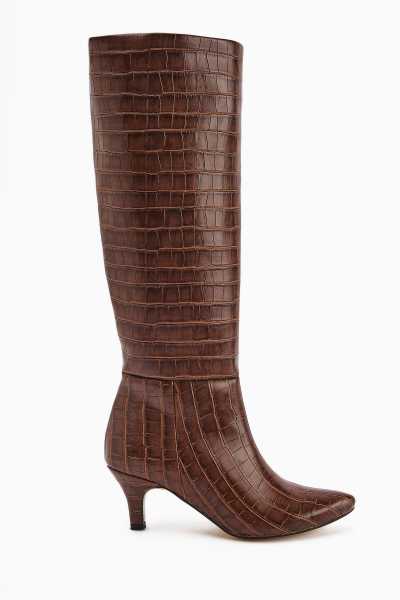 Aria Kahve Kroko Desenli Topuklu Kadın Çizme
