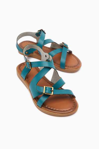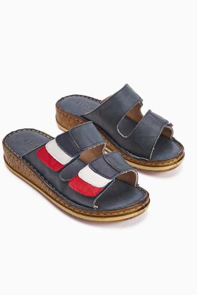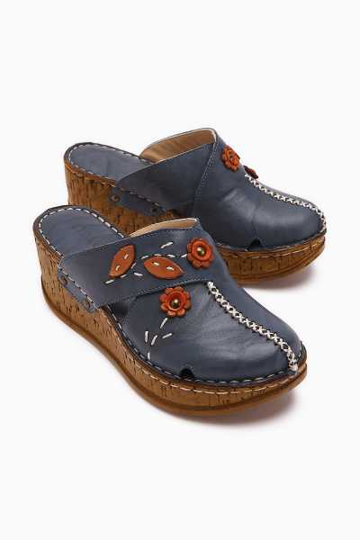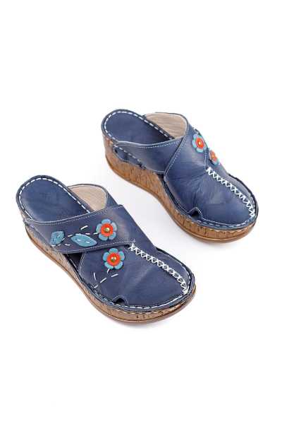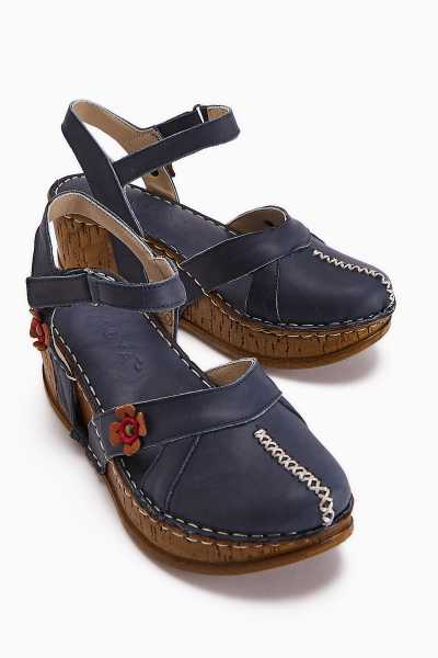Hakiki Deri Lilah Lacivert Antik Detaylı Sandalet